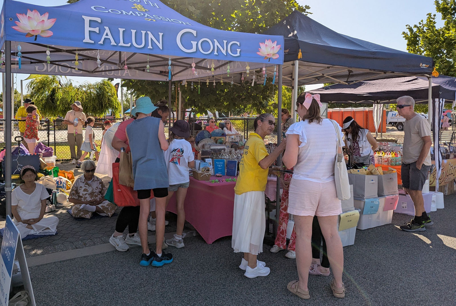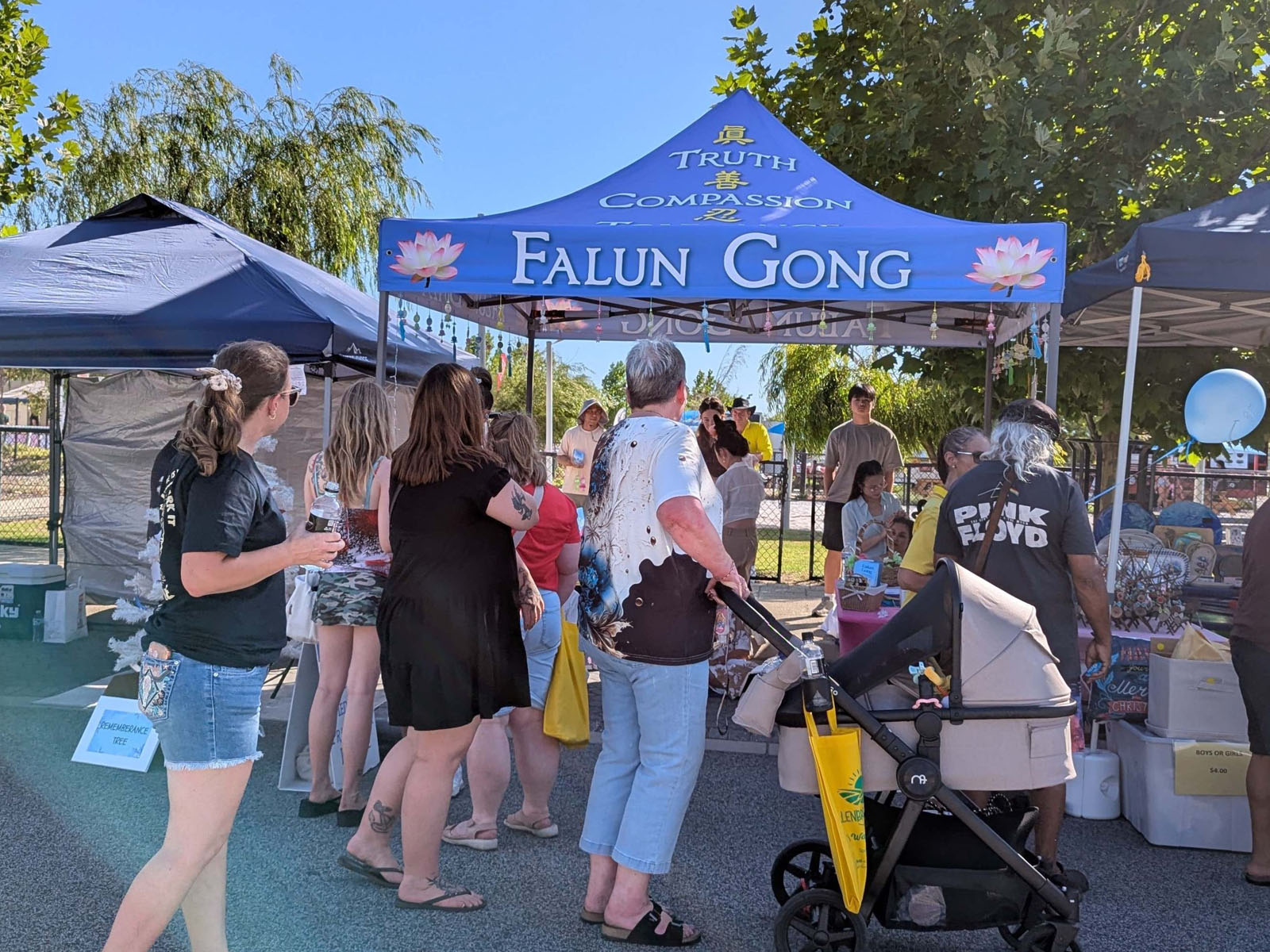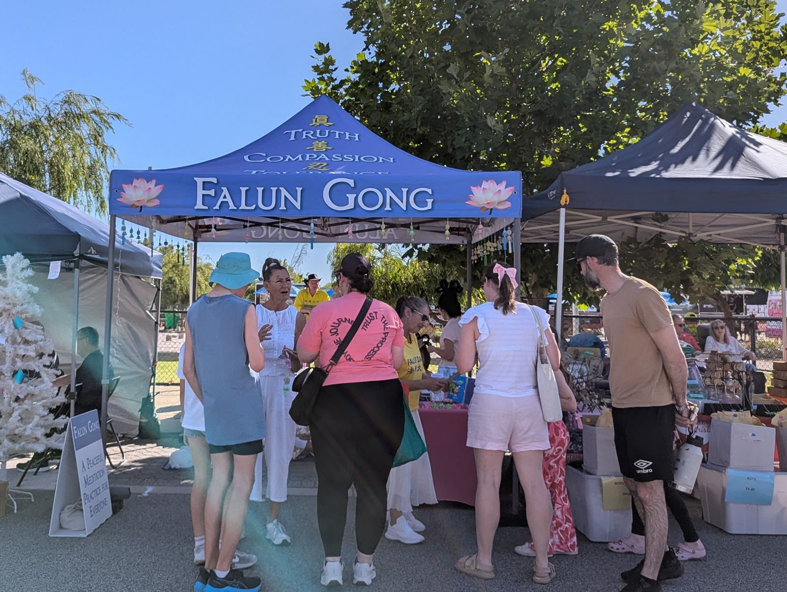 Gđa Sharon i gđa Simone su svratile do štanda jer je Sharon rekla da je ranije čula za Falun Dafa. Rekla je „Željela sam svratiti da vam se javim jer znam za istoriju Falun Dafa“.