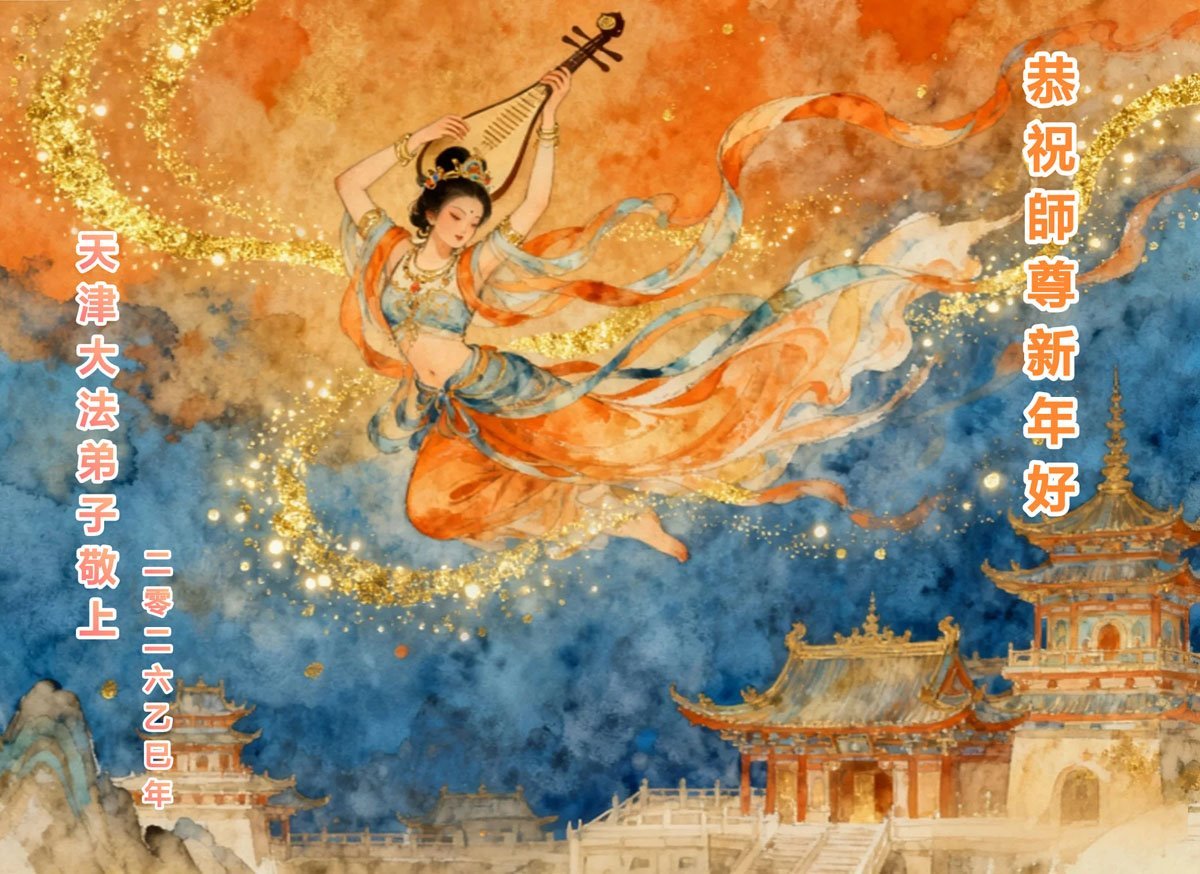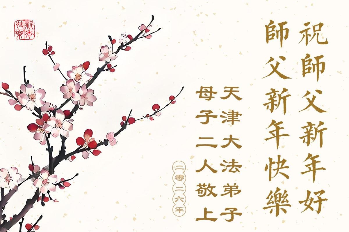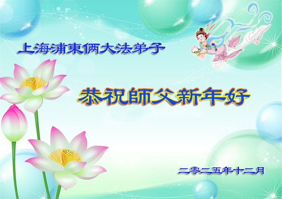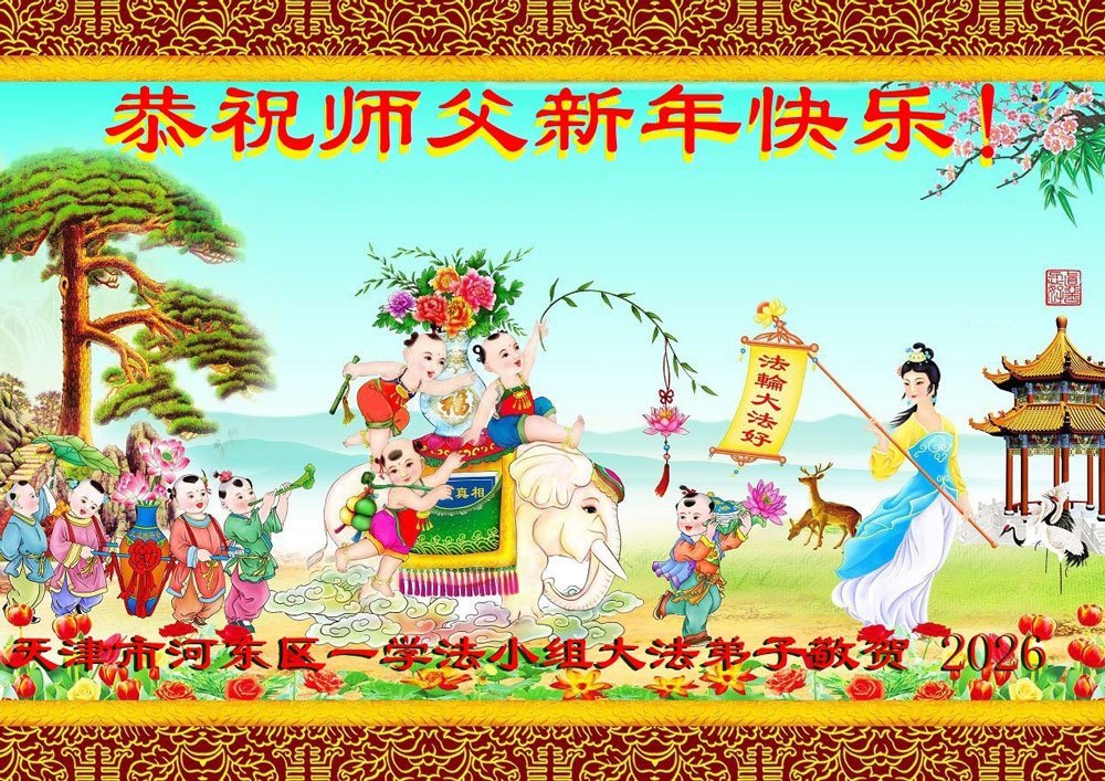 Falun Dafa praktikanti iz Tjenđina i Šangaja s poštovanjem žele Učitelju Li Hongdžiju srećnu Novu godinu (115 čestitki)