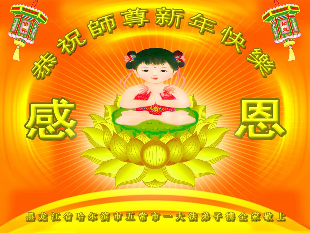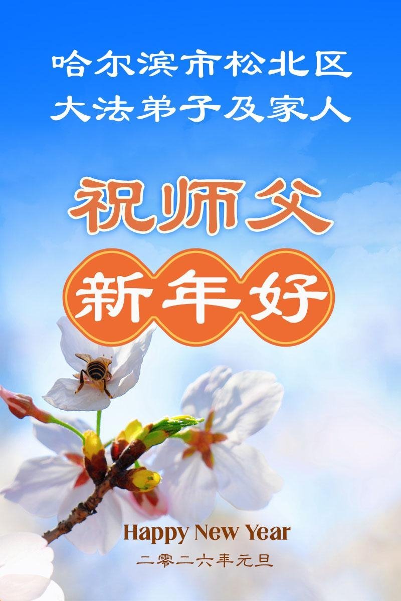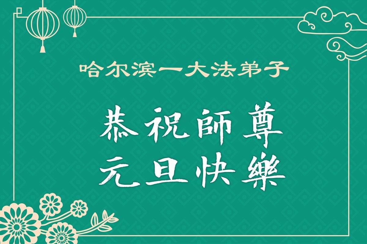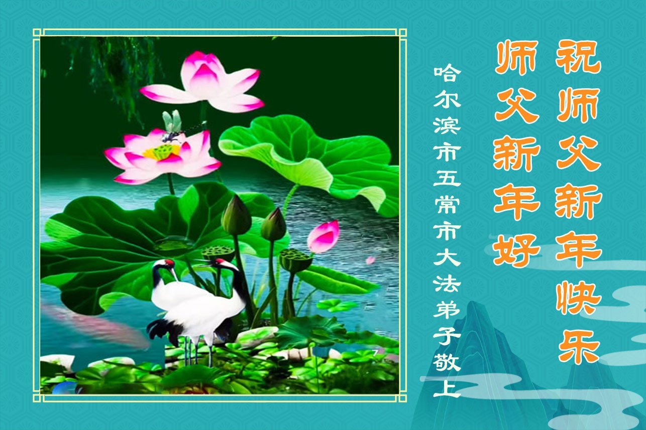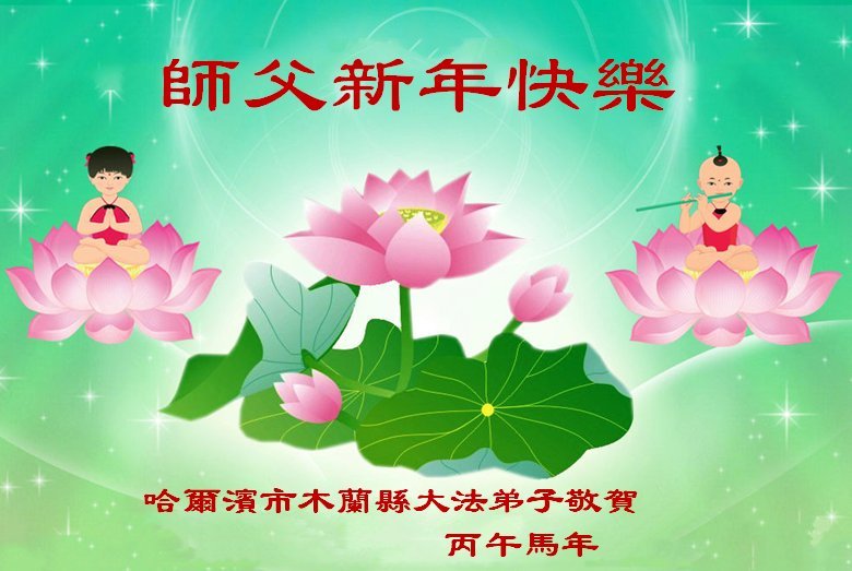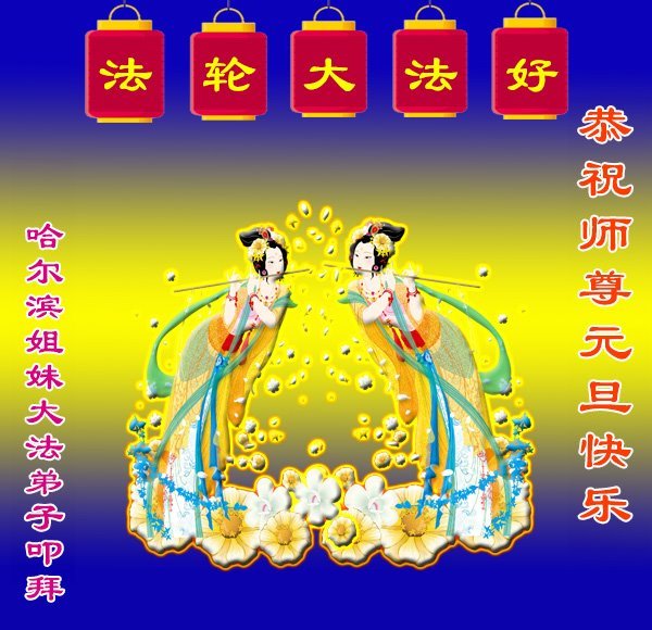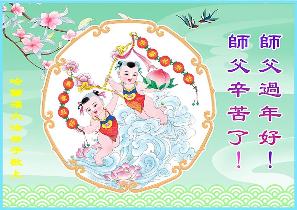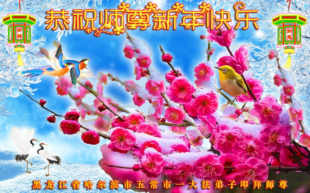 Falun Dafa praktikanti iz grada Harbina s poštovanjem žele Učitelju Li Hongdžiju srećnu Novu godinu (108 čestitki)