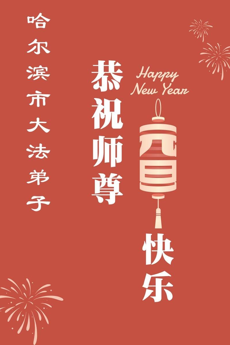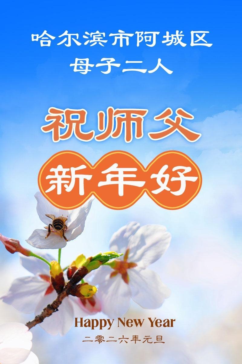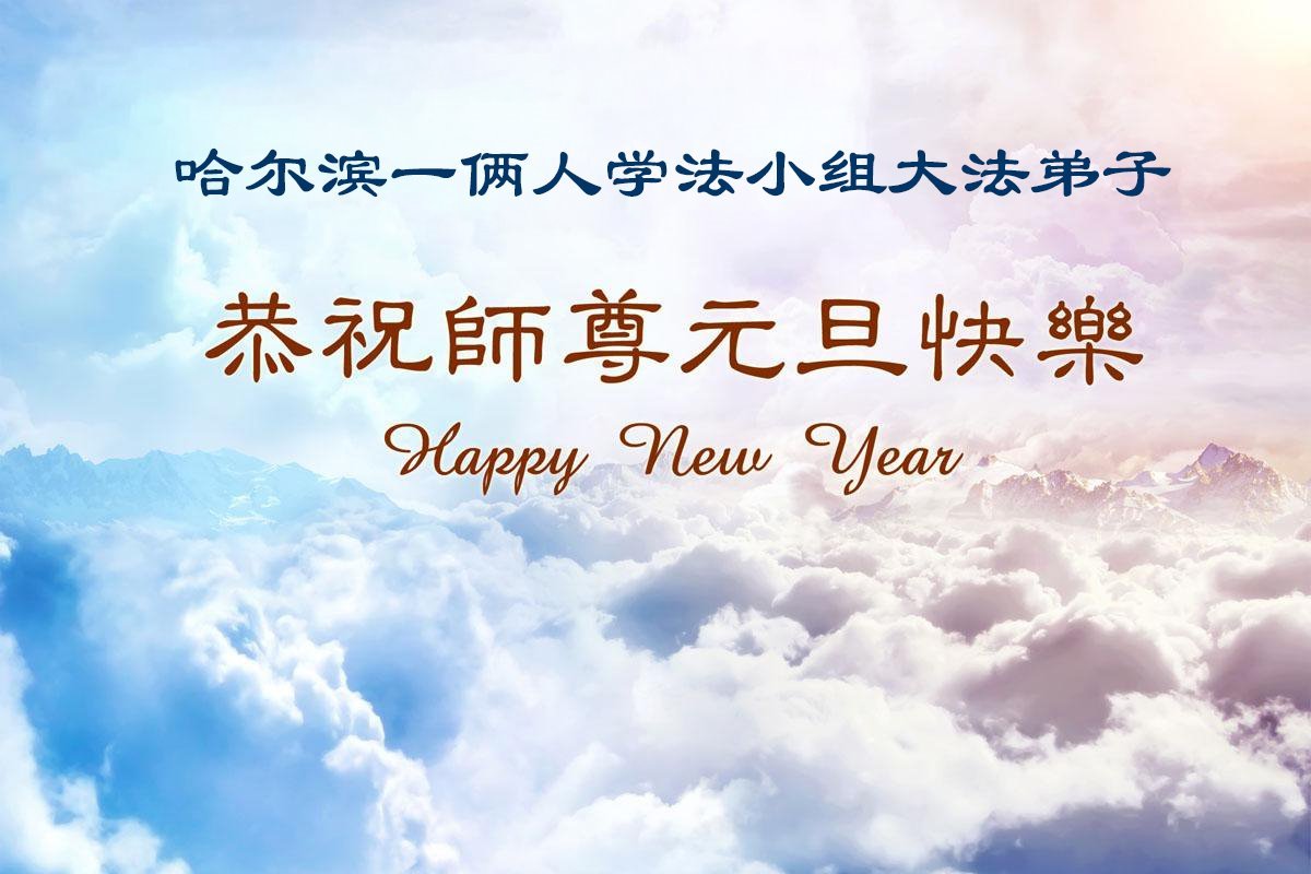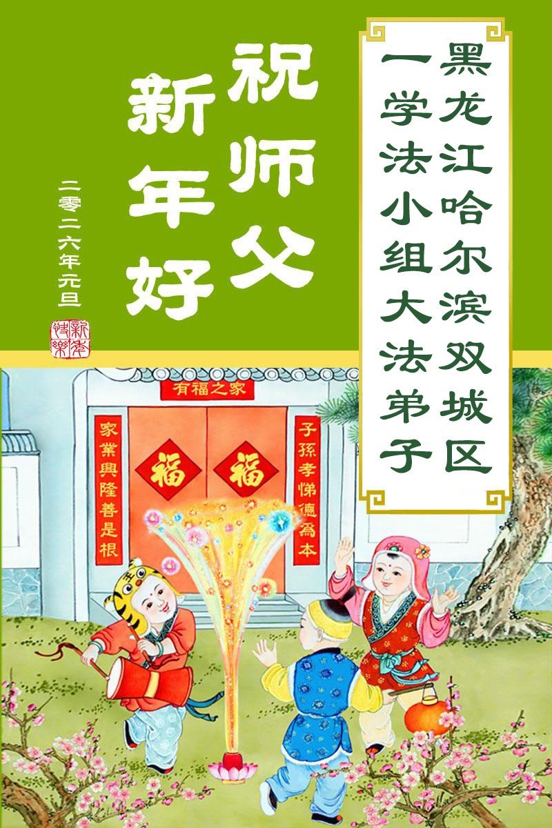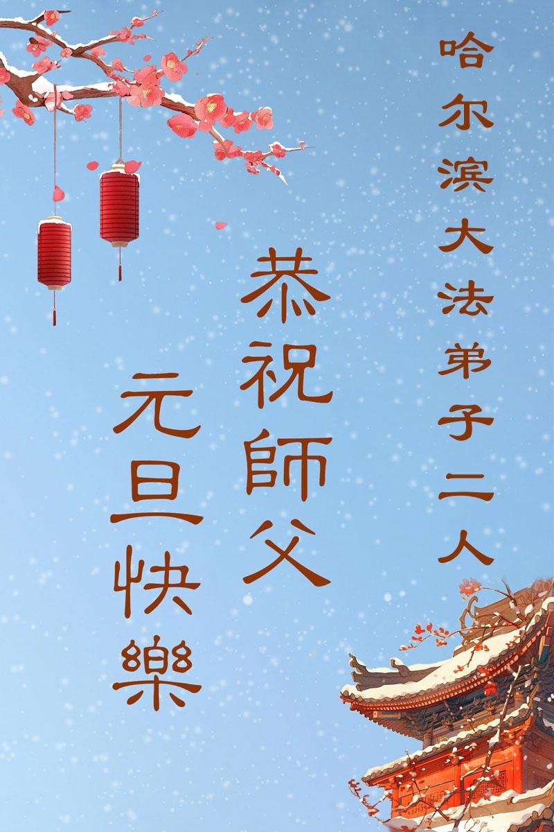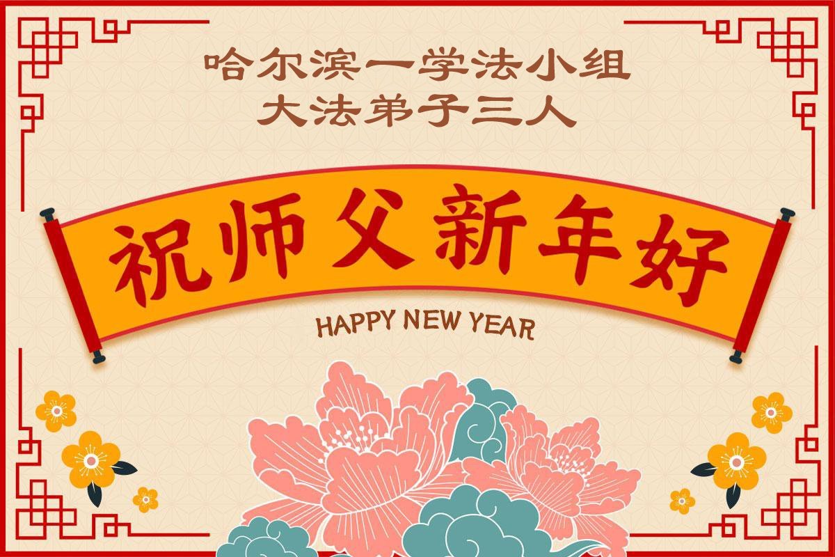 Falun Dafa praktikanti iz grada Harbina s poštovanjem žele Učitelju Li Hongdžiju srećnu Novu godinu (108 čestitki)