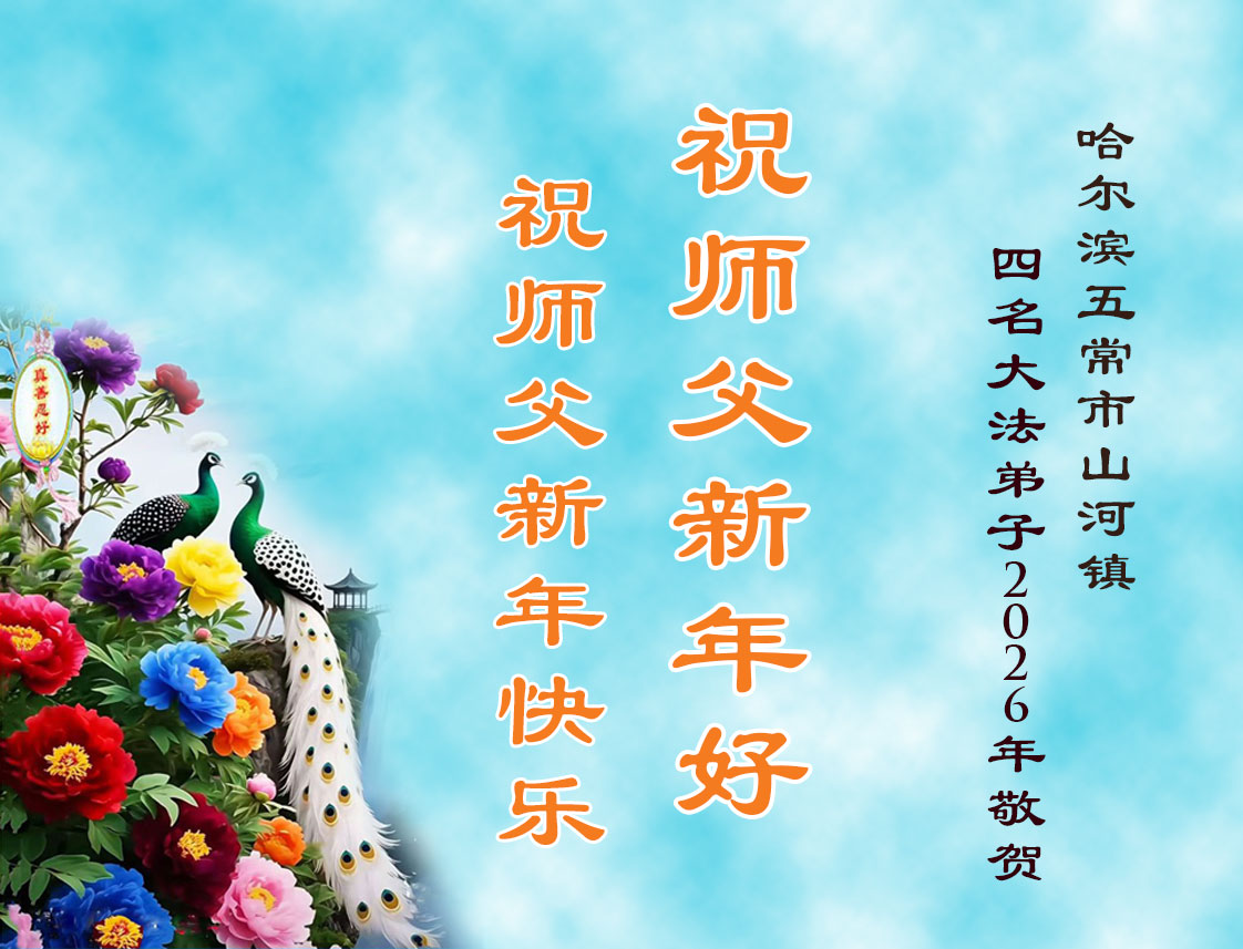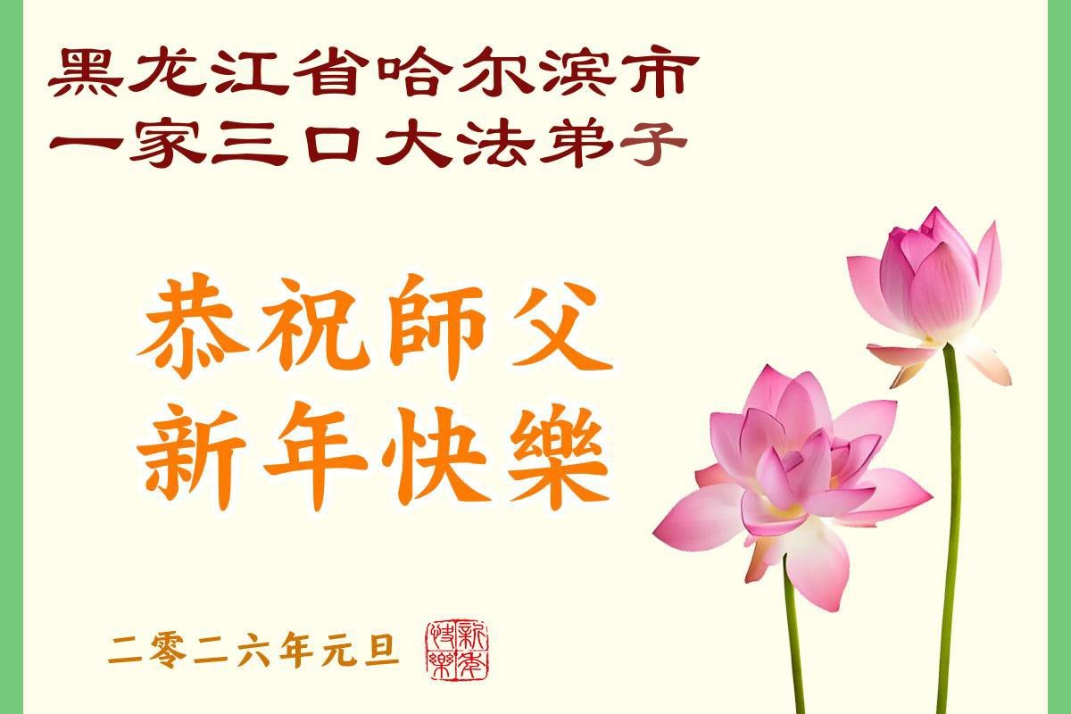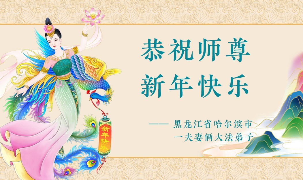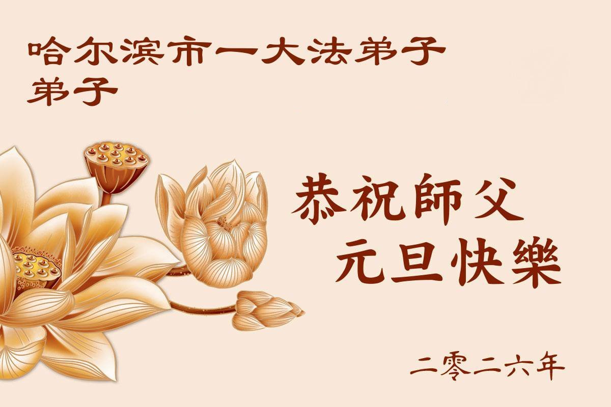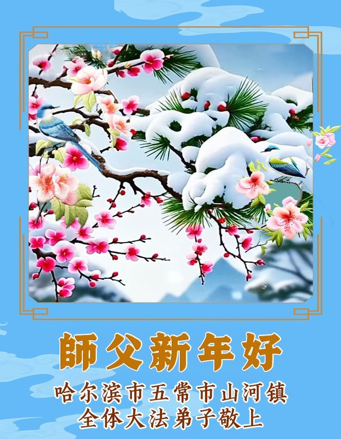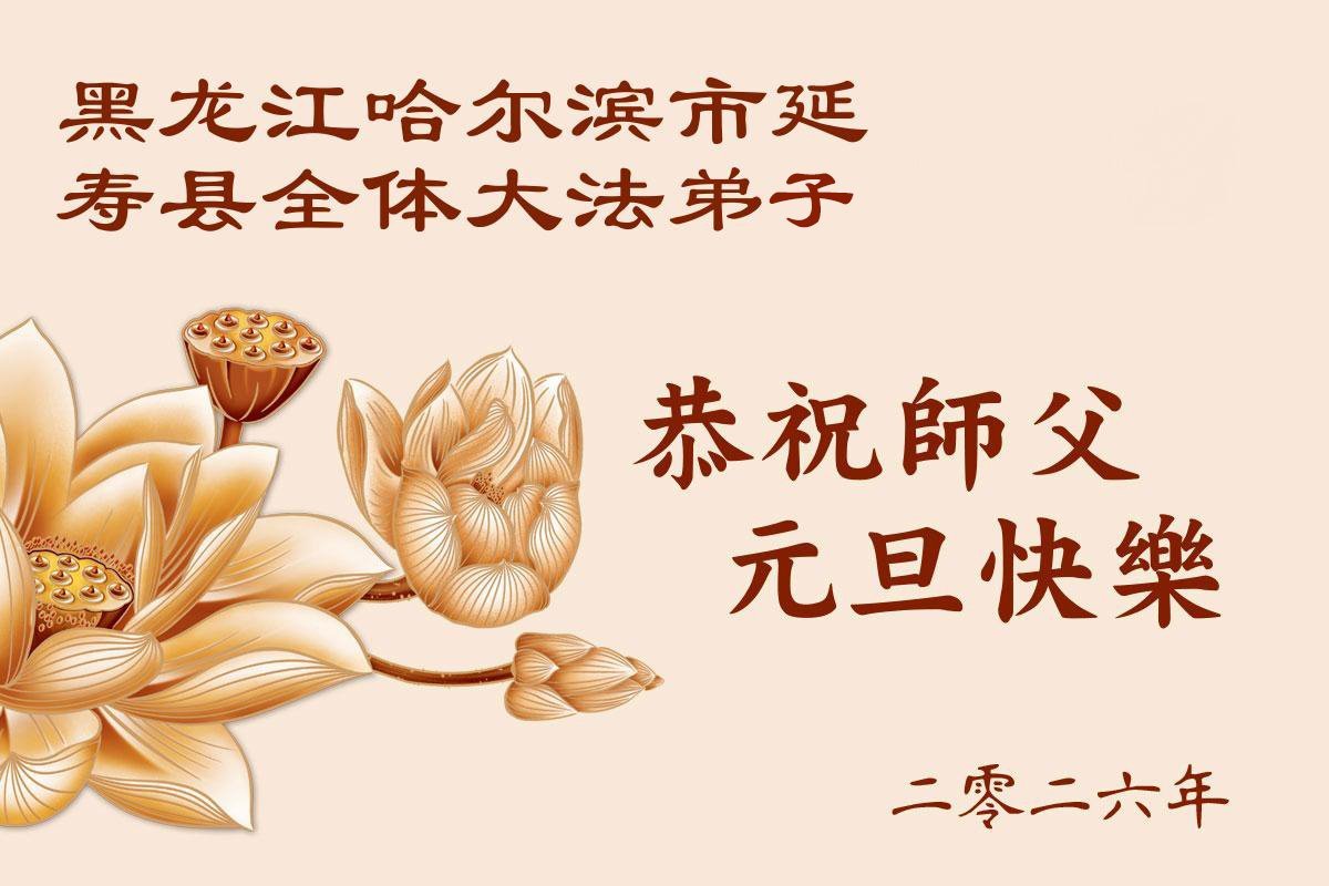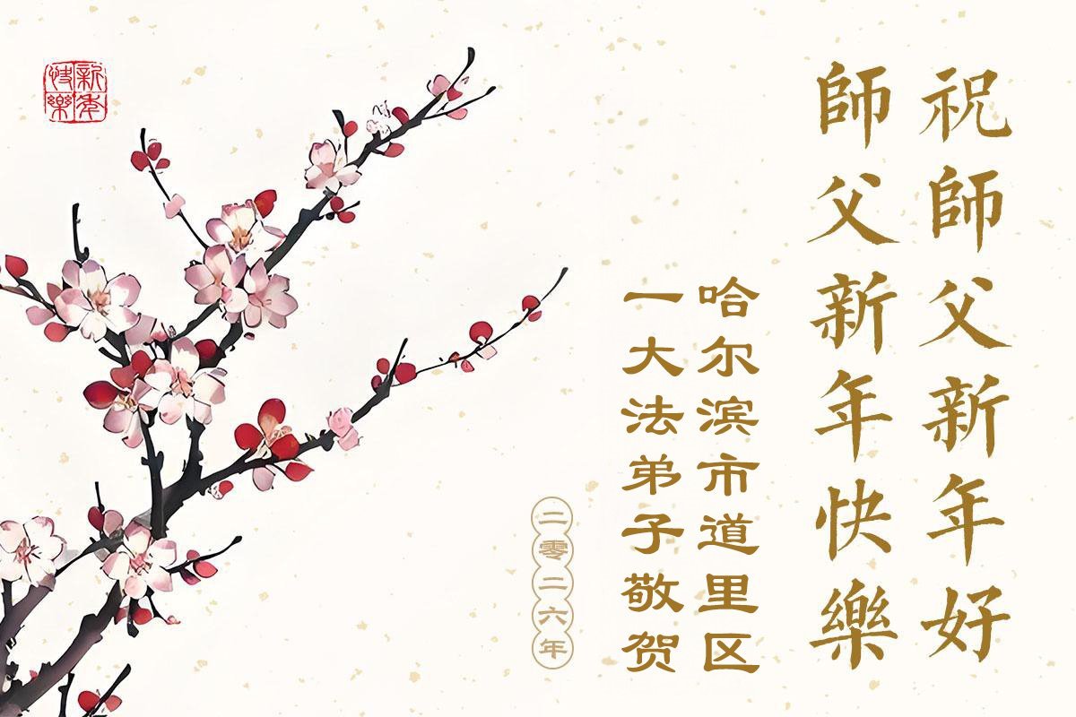Falun Dafa praktikanti iz grada Harbina s poštovanjem žele Učitelju Li Hongdžiju srećnu Novu godinu (108 čestitki)