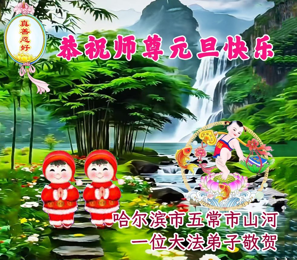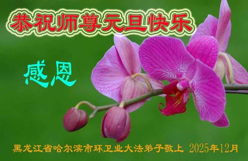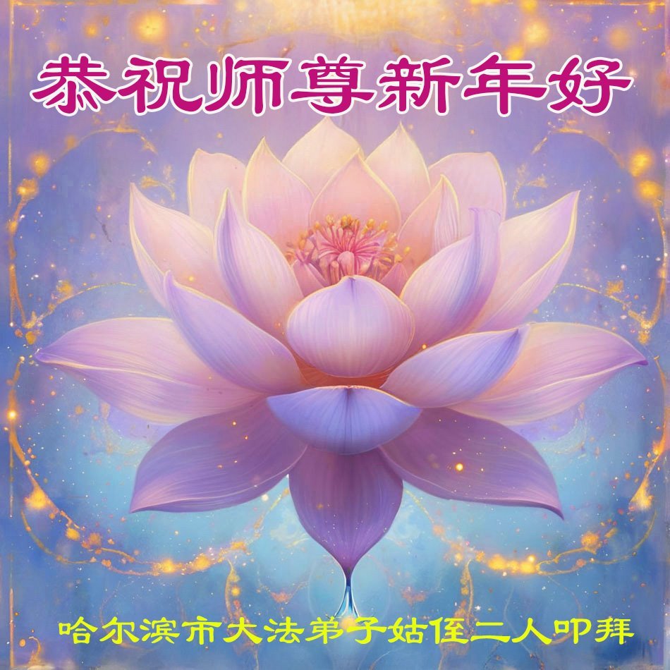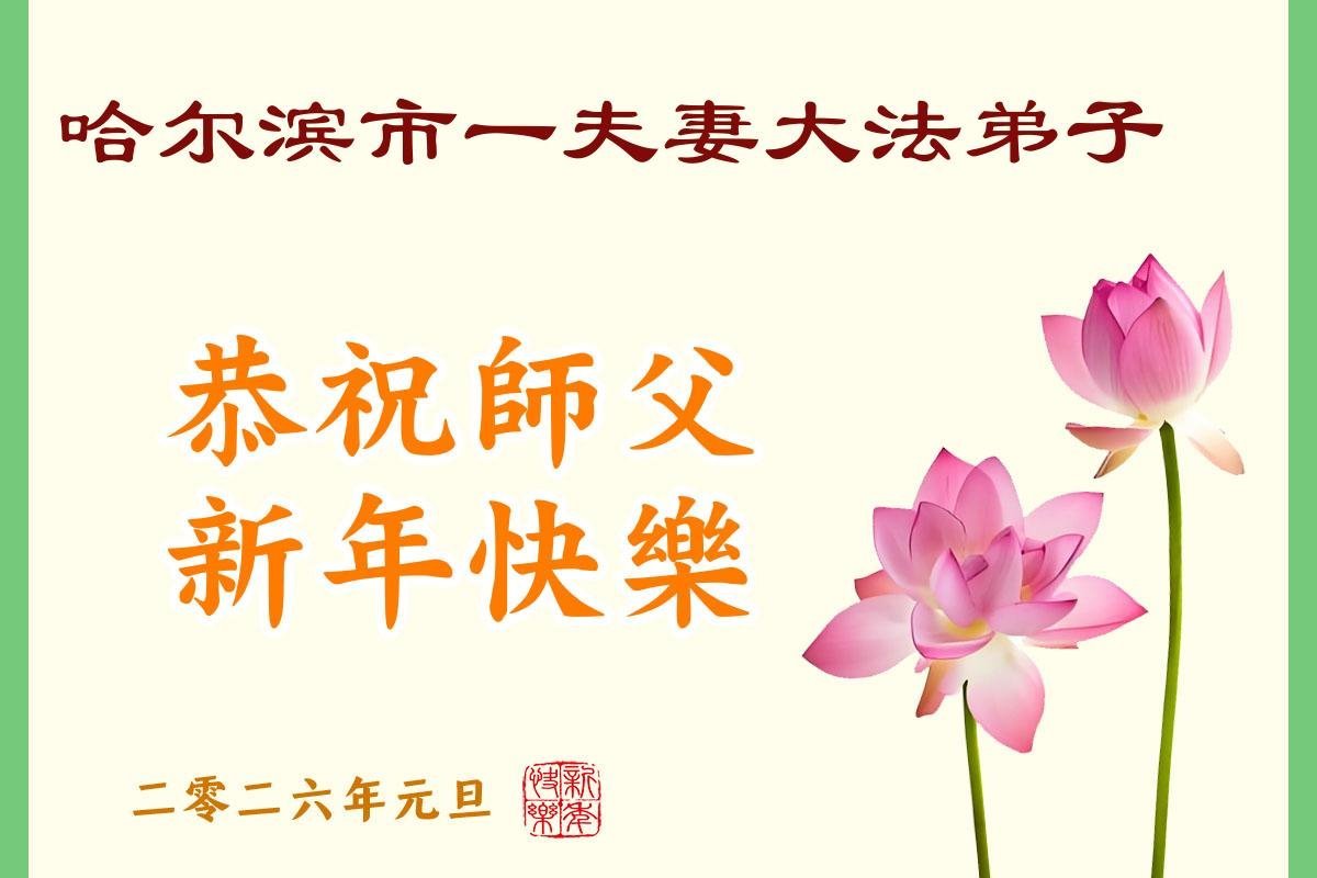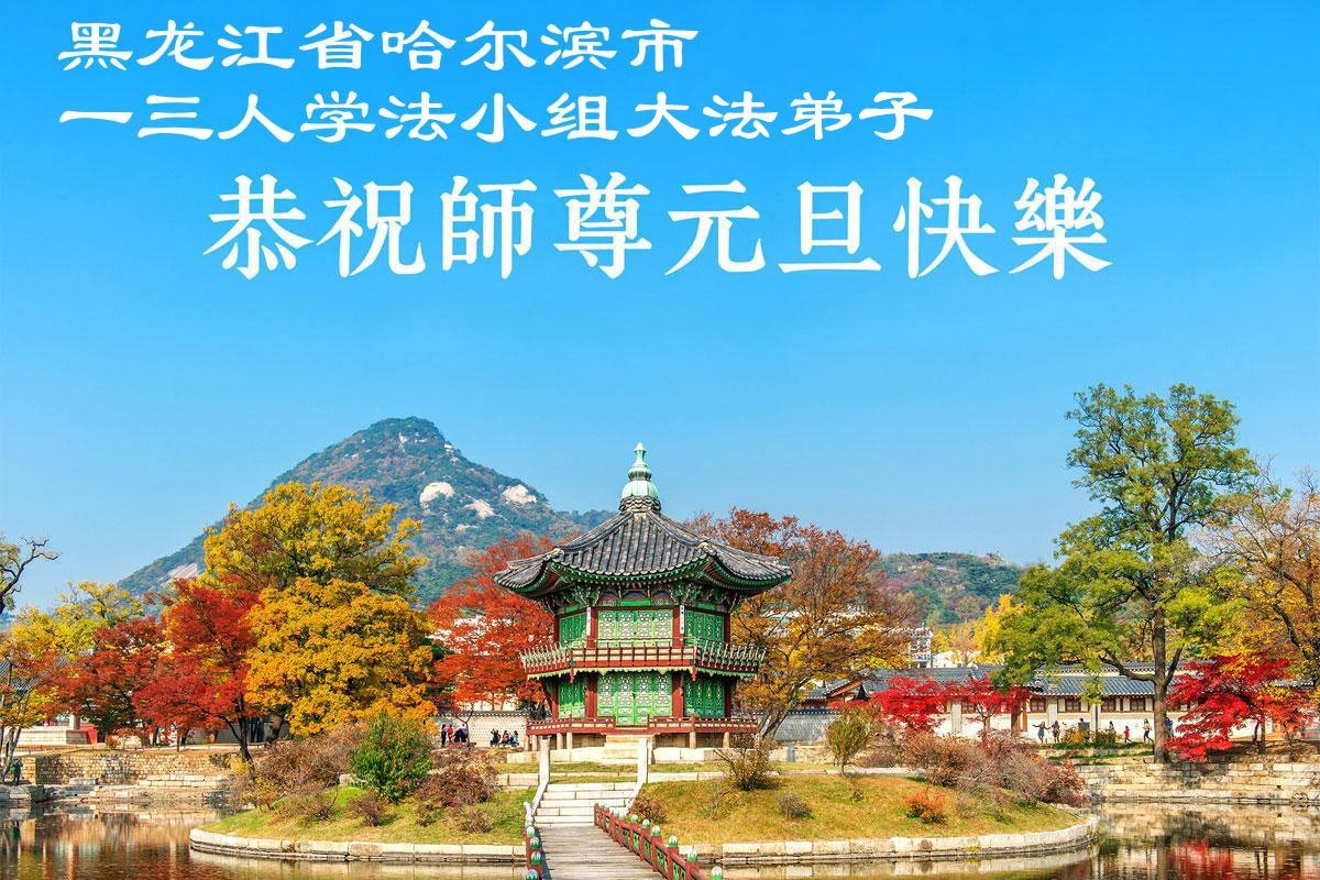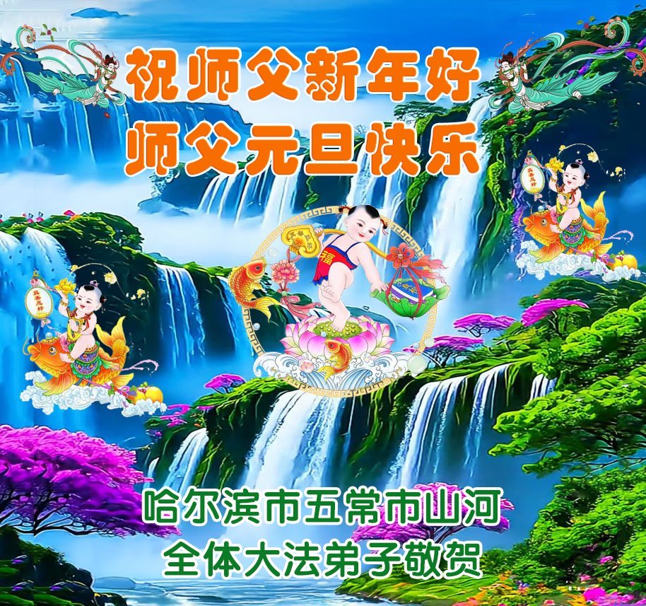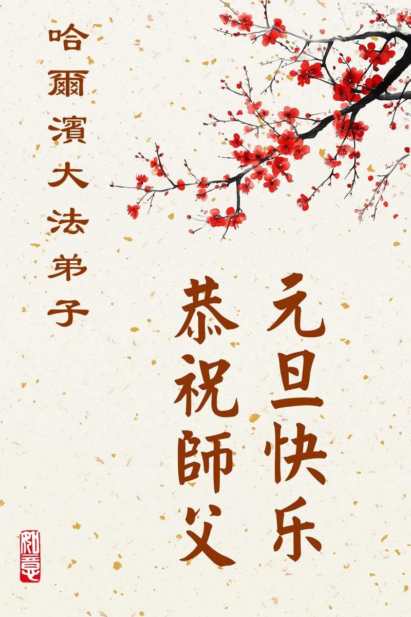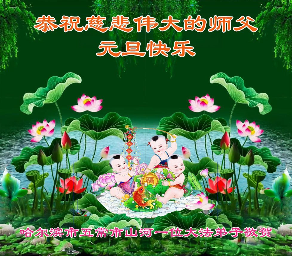 Falun Dafa praktikanti iz grada Harbina s poštovanjem žele Učitelju Li Hongdžiju srećnu Novu godinu (108 čestitki)