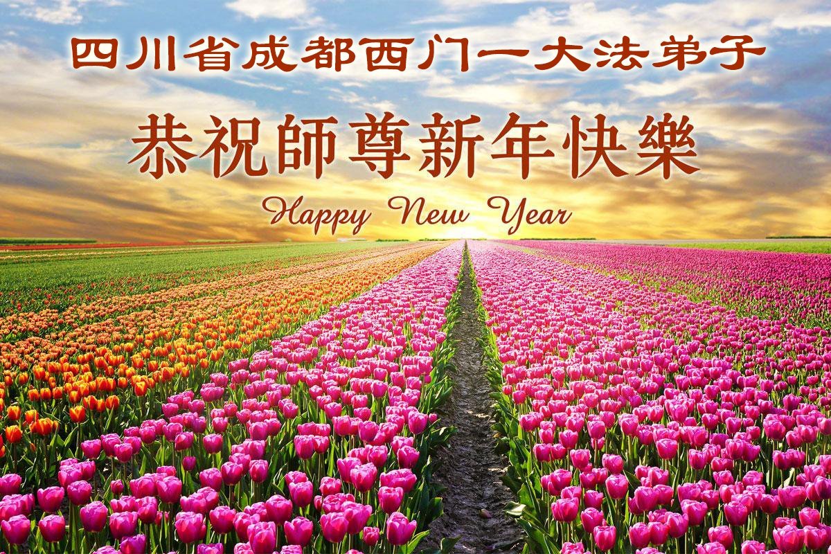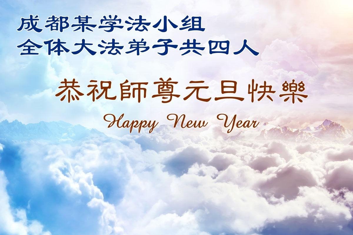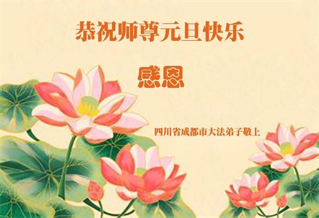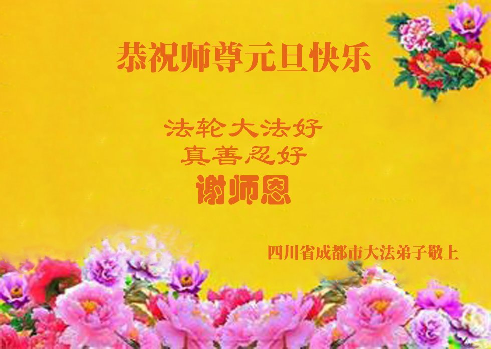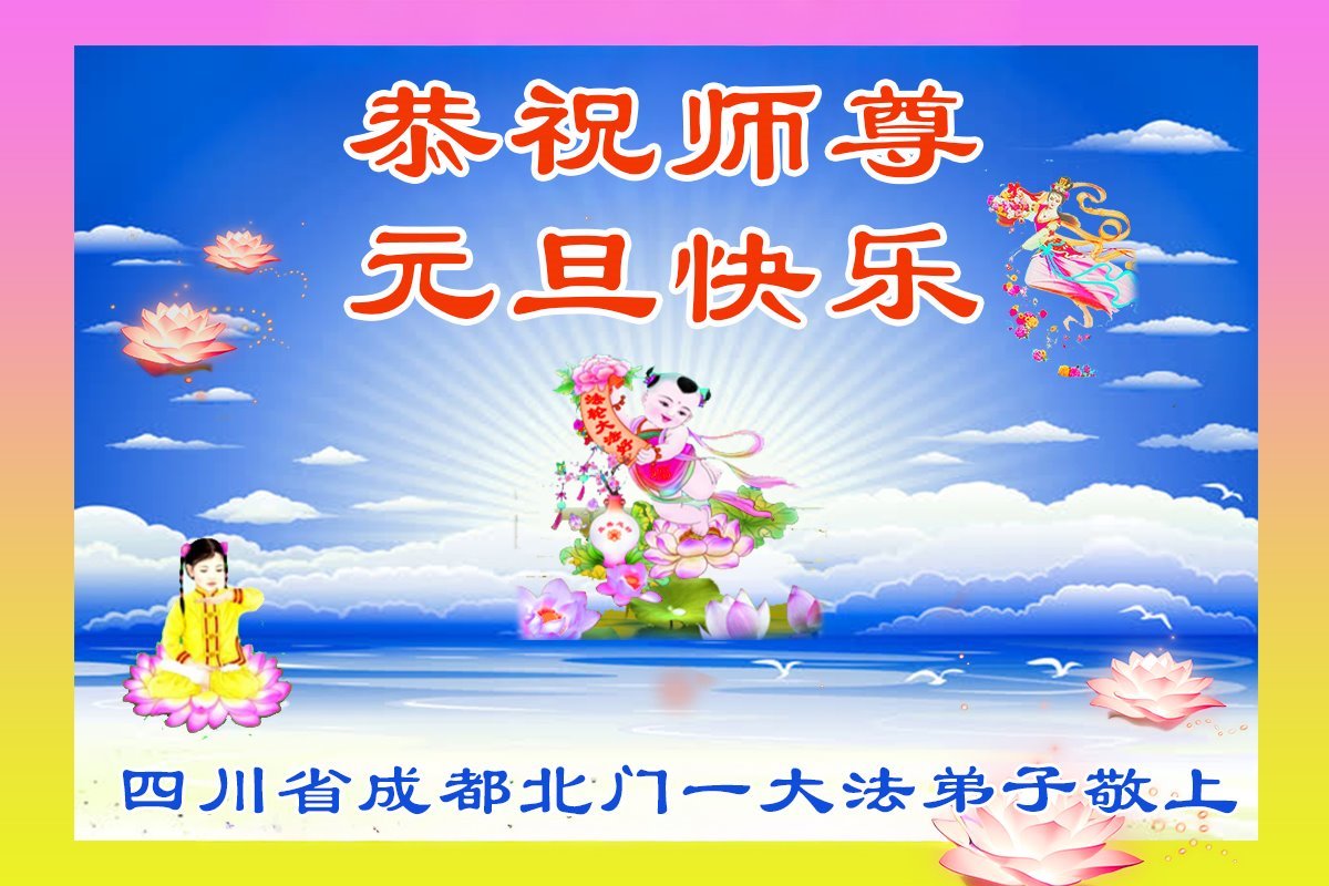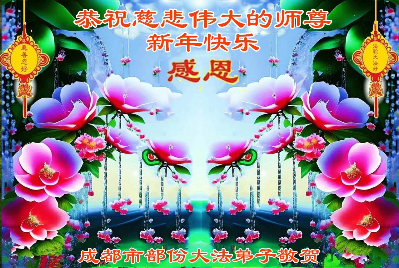 Falun Dafa praktikanti iz grada Čengdua s poštovanjem žele Učitelju Li Hongdžiju srećnu Novu godinu (102 čestitke)
