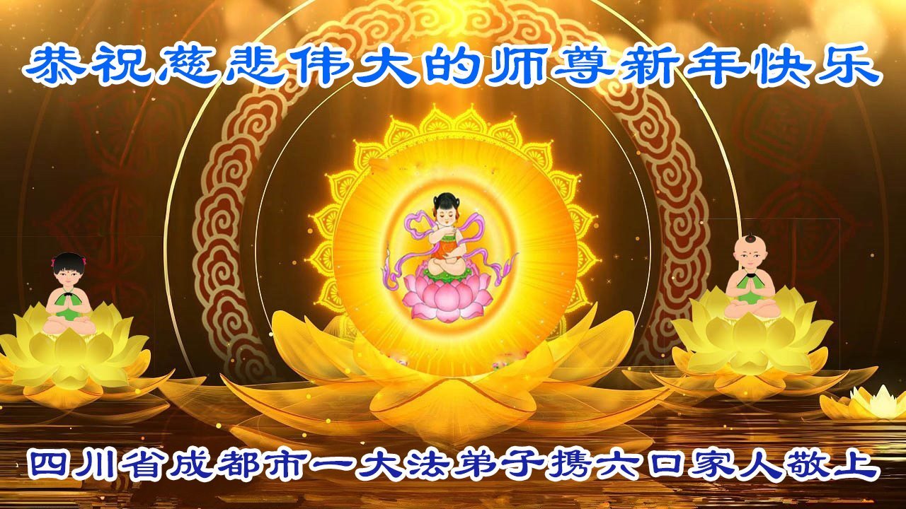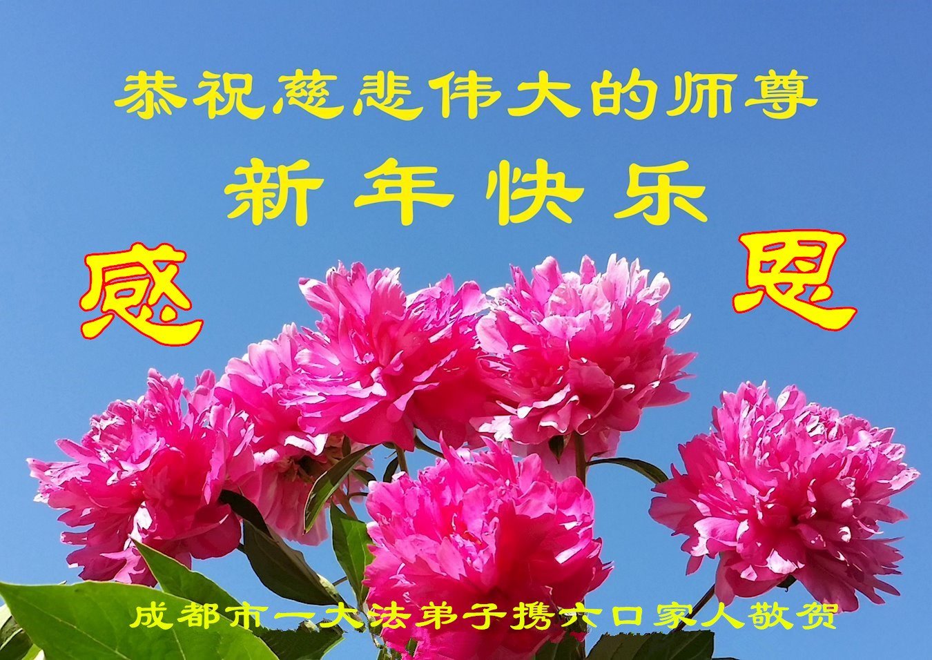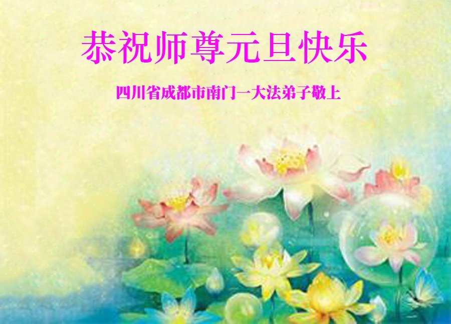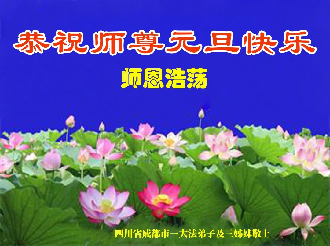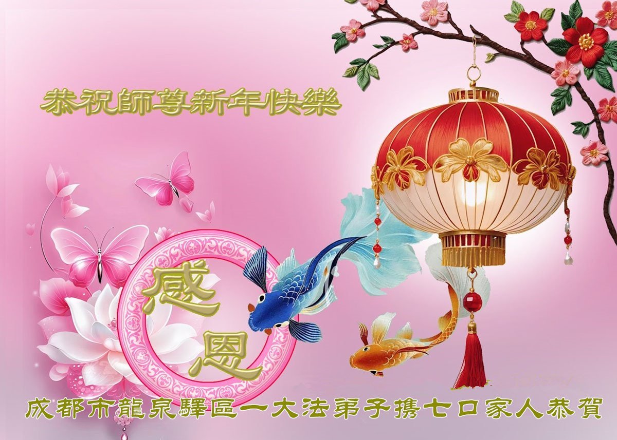 Falun Dafa praktikanti iz grada Čengdua s poštovanjem žele Učitelju Li Hongdžiju srećnu Novu godinu (102 čestitke)