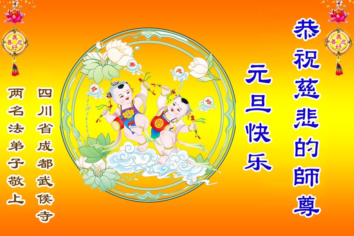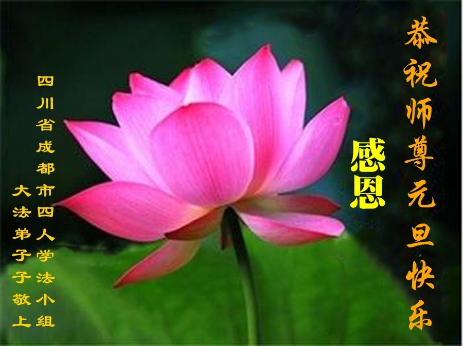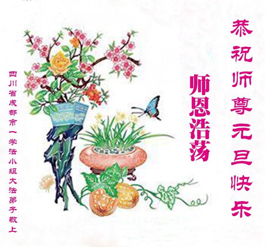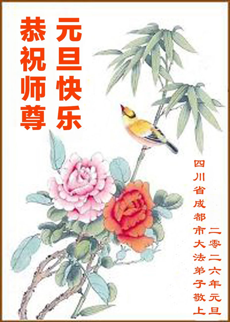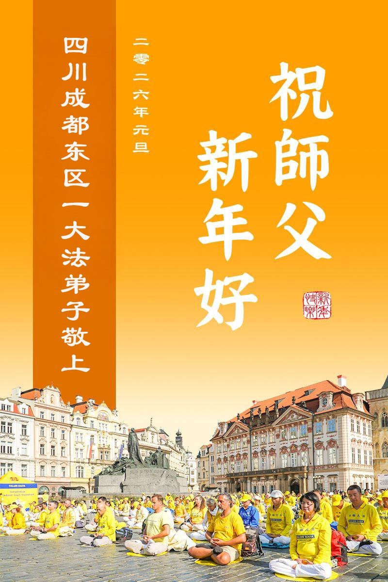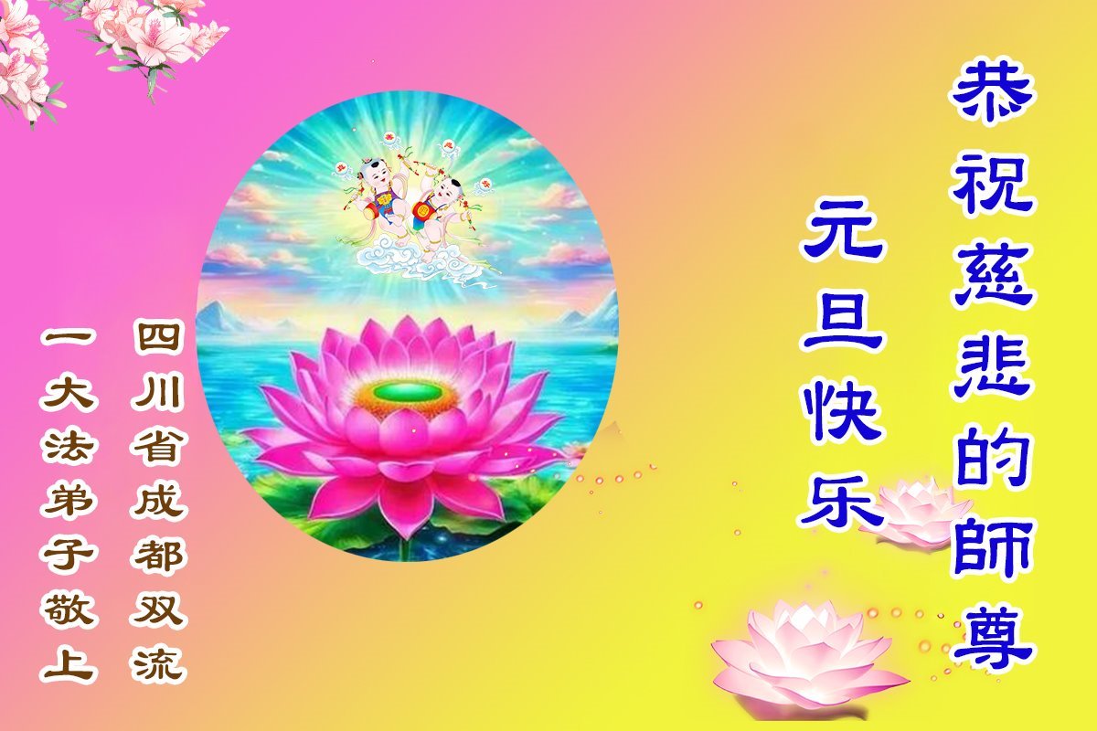 Falun Dafa praktikanti iz grada Čengdua s poštovanjem žele Učitelju Li Hongdžiju srećnu Novu godinu (102 čestitke)