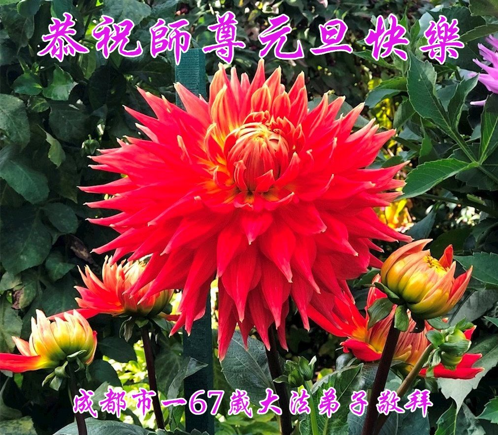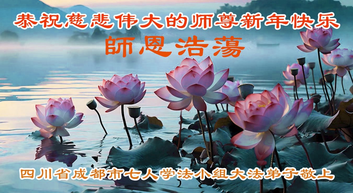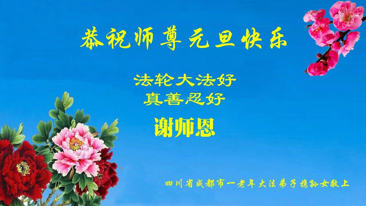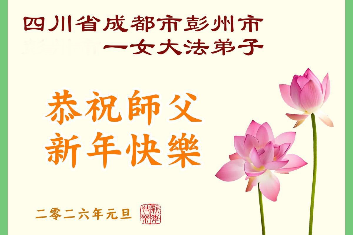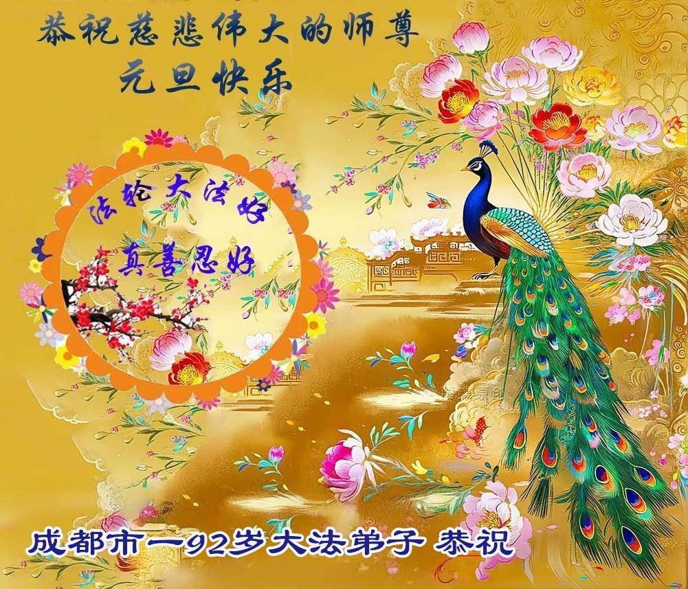 Falun Dafa praktikanti iz grada Čengdua s poštovanjem žele Učitelju Li Hongdžiju srećnu Novu godinu (102 čestitke)