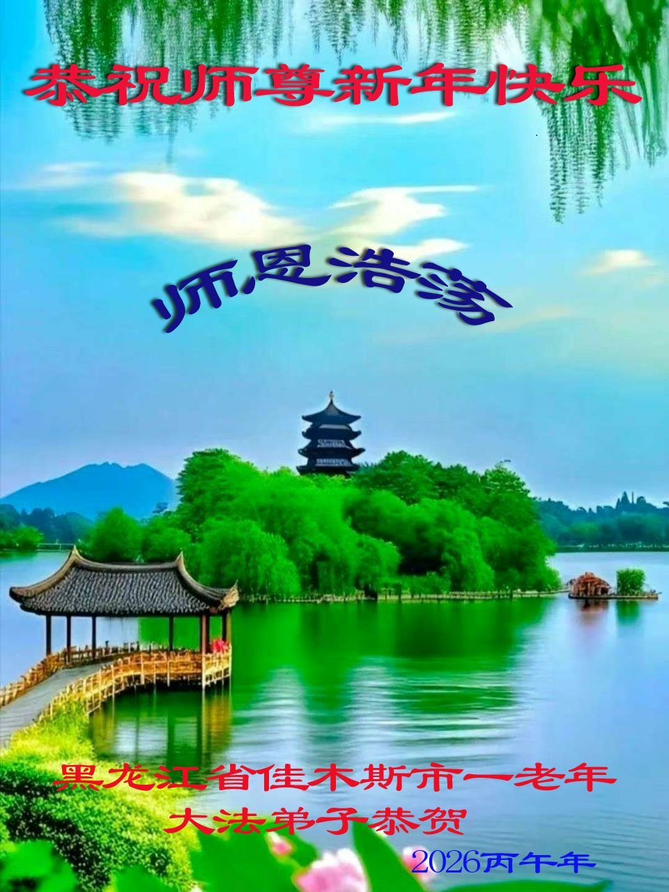 Falun Dafa praktikanti iz provincije Hejlungđang s poštovanjem žele Učitelju Li Hongdžiju srećnu Novu godinu (107 čestitki)