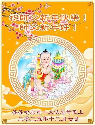 Falun Dafa praktikanti iz provincije Hejlungđang s poštovanjem žele Učitelju Li Hongdžiju srećnu Novu godinu (110 čestitki)
