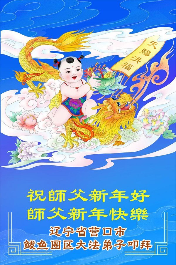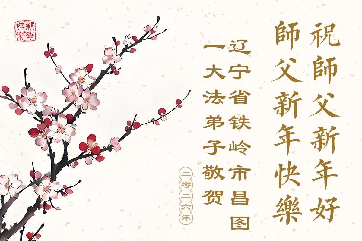Falun Dafa praktikanti iz provincije Liaoning s poštovanjem žele Učitelju Li Hongdžiju srećnu Novu godinu (108 čestitki)