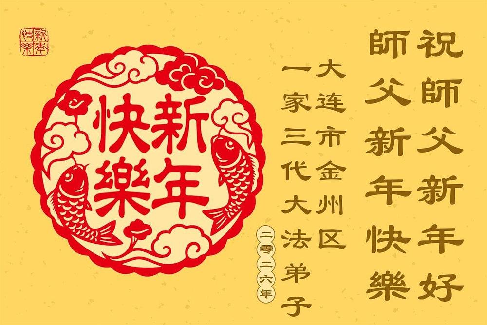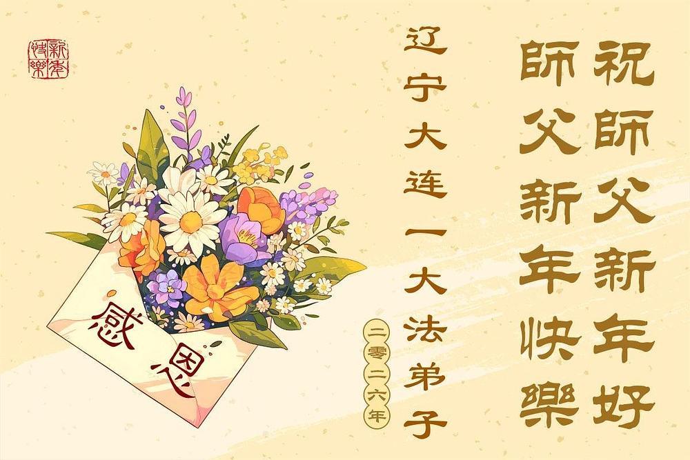 Falun Dafa praktikanti iz provincije Liaoning s poštovanjem žele Učitelju Li Hongdžiju srećnu Novu godinu (107 čestitki)
