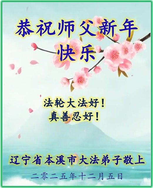 Falun Dafa praktikanti iz provincije Liaoning s poštovanjem žele Učitelju Li Hongdžiju srećnu Novu godinu (108 čestitki)