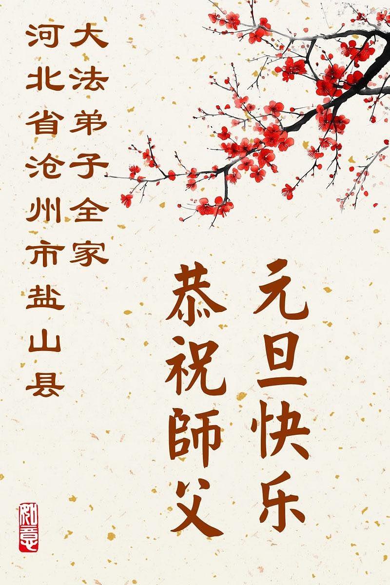 Falun Dafa praktikanti iz provincije Hebej s poštovanjem žele Učitelju Li Hongdžiju srećnu Novu godinu (114 čestitki)
