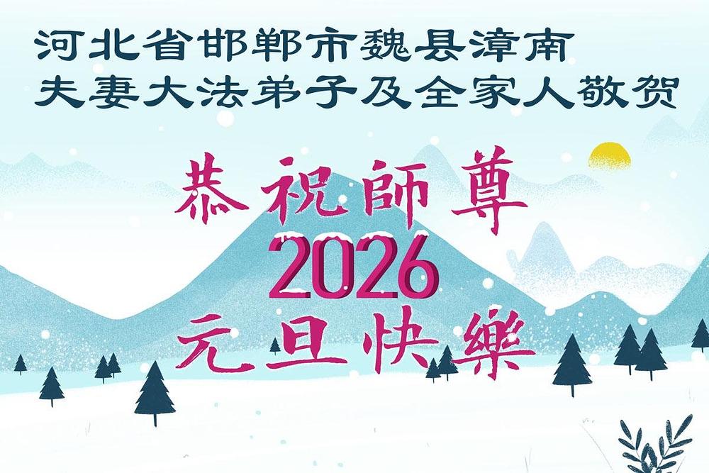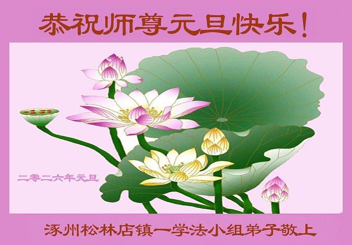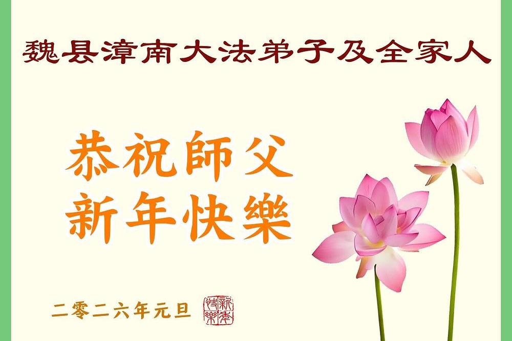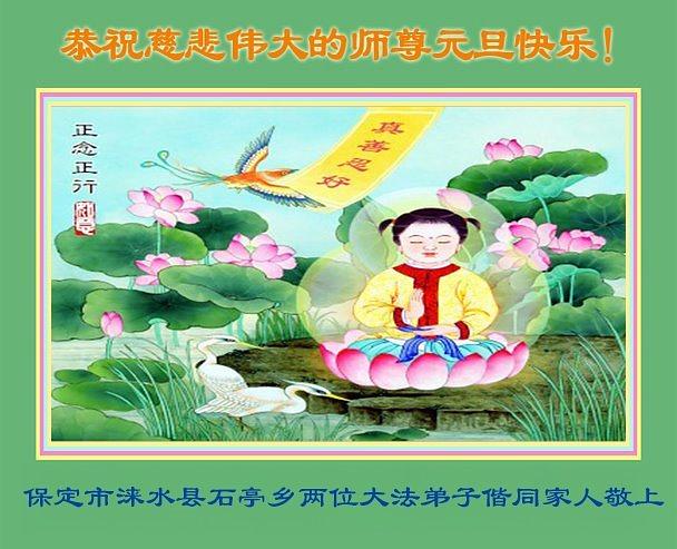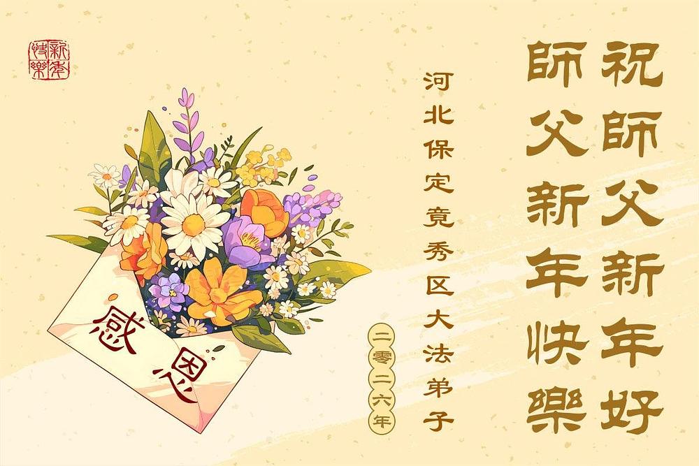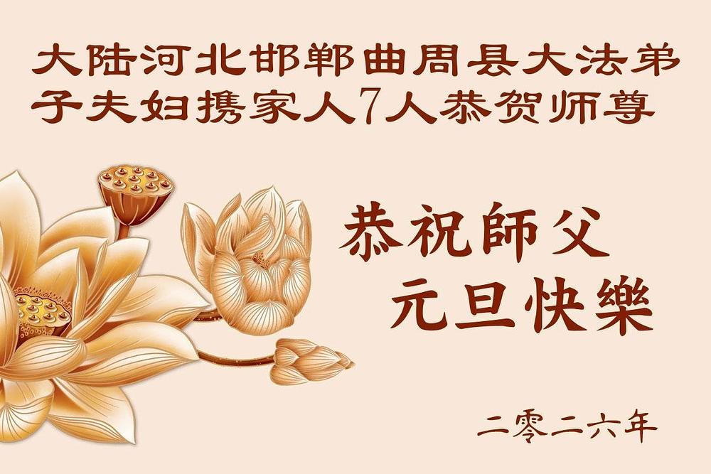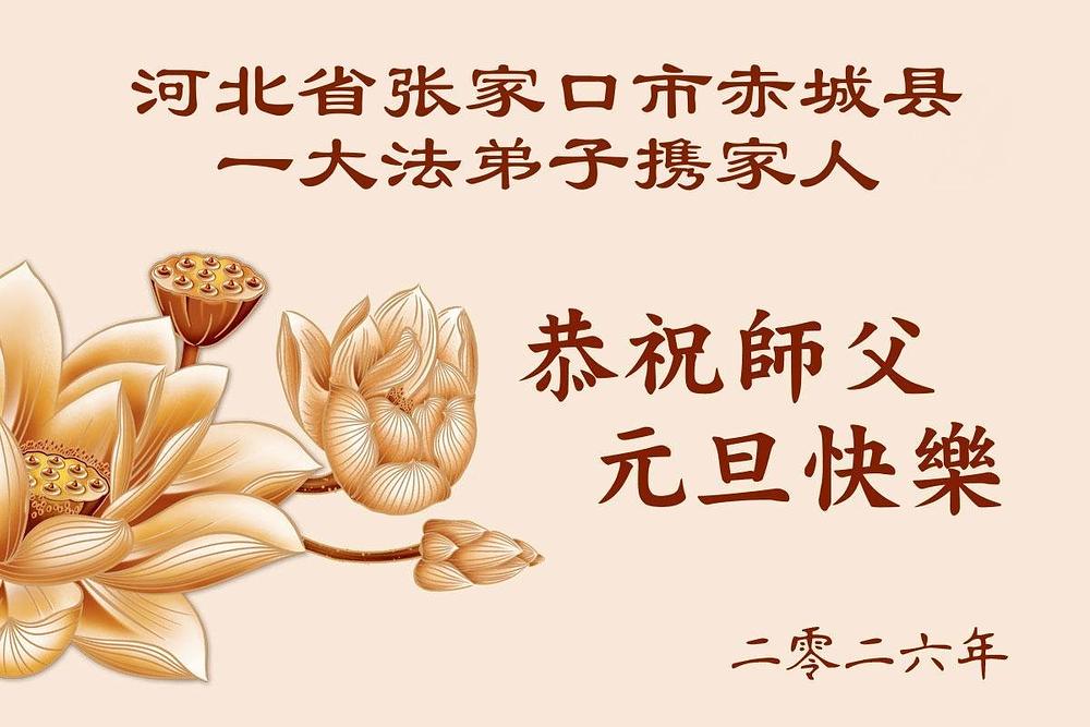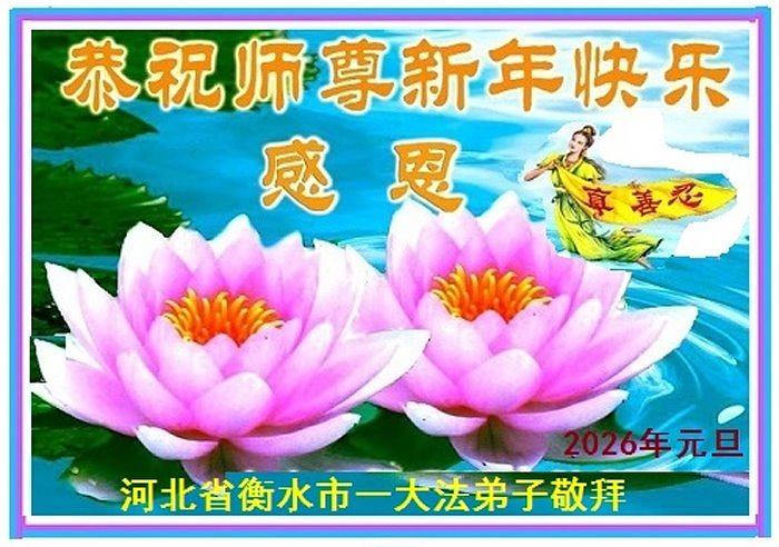 Falun Dafa praktikanti iz provincije Hebej s poštovanjem žele Učitelju Li Hongdžiju srećnu Novu godinu (110 čestitki)