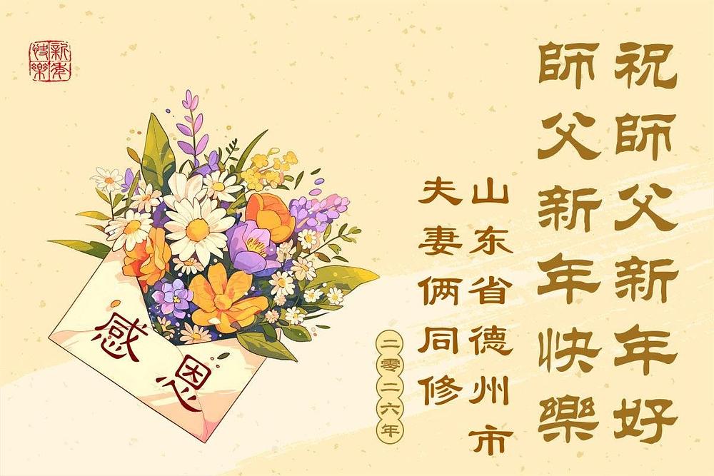 Falun Dafa praktikanti iz provincije Šandong s poštovanjem žele Učitelju Li Hongdžiju srećnu Novu godinu (113 čestitki)