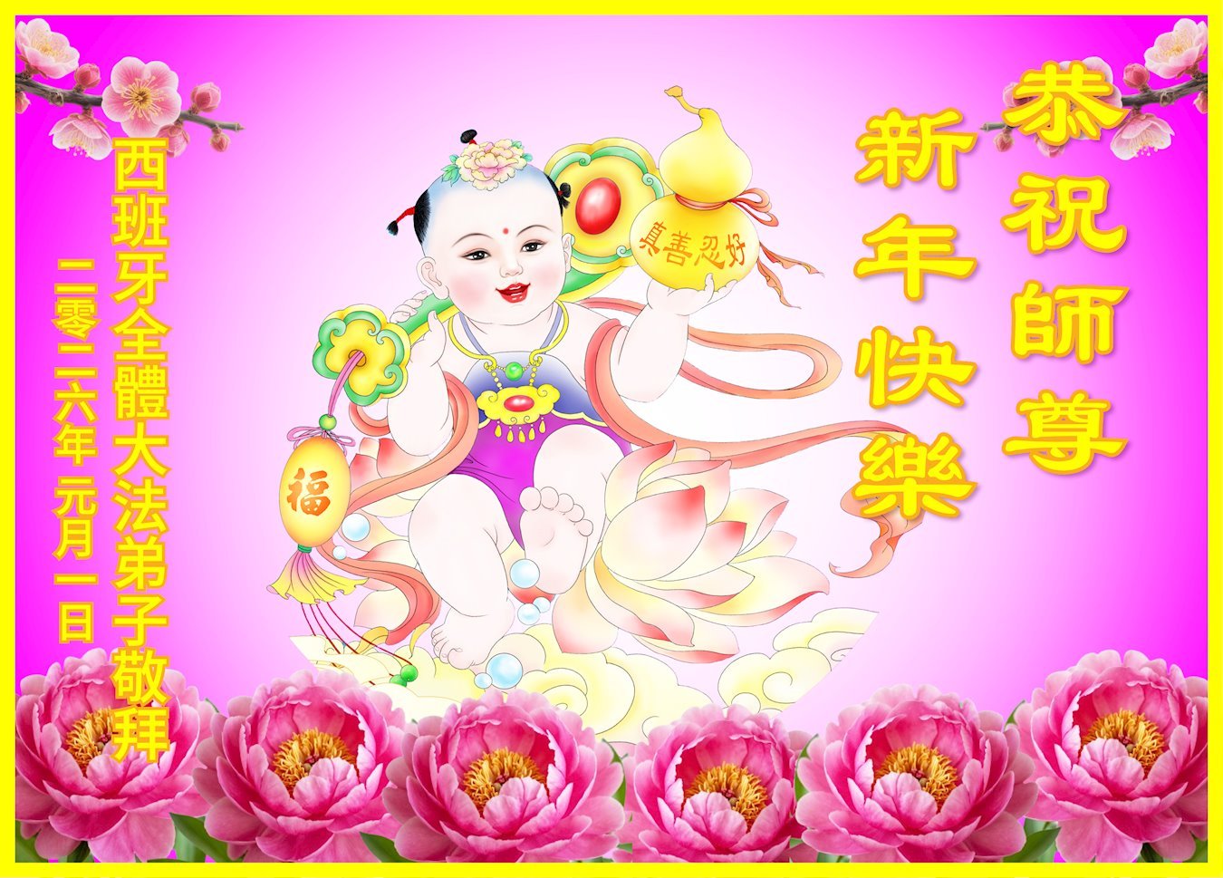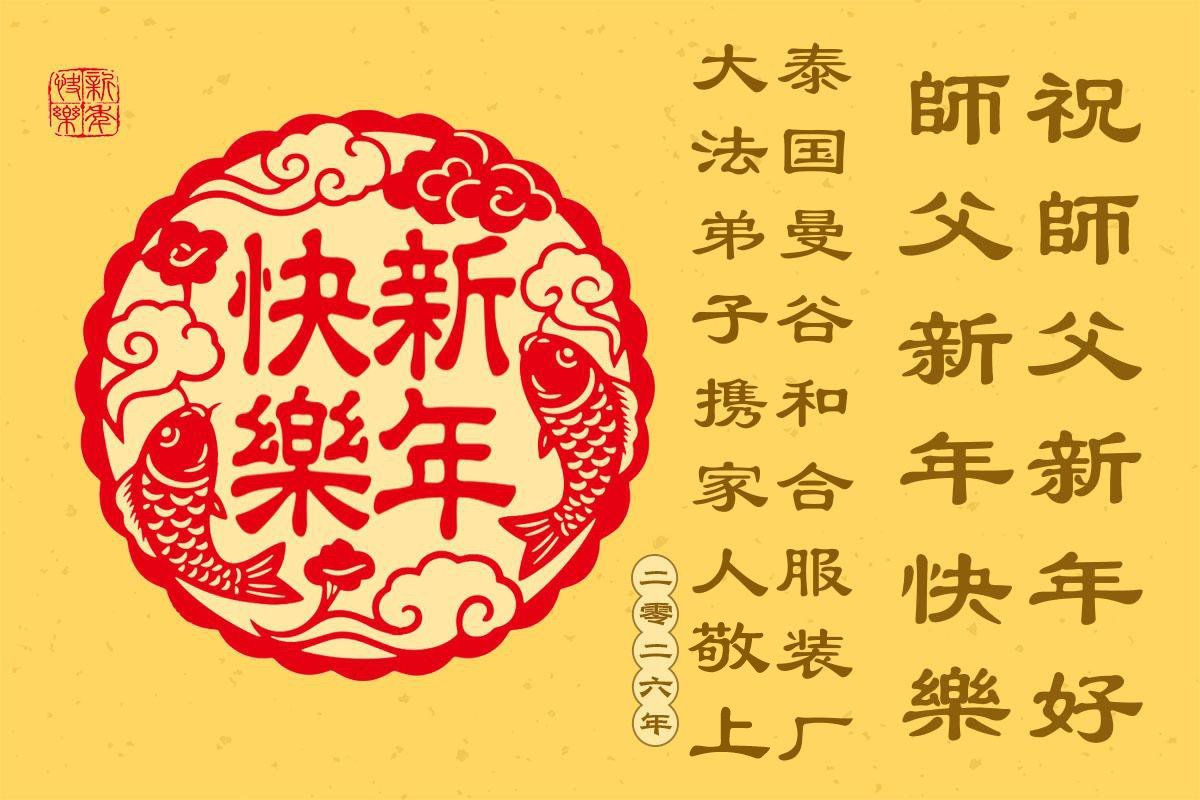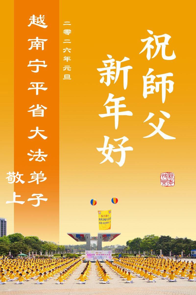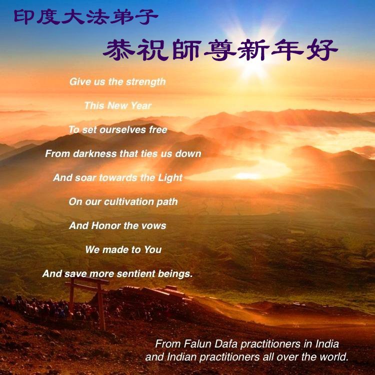 Čestitke za Novu godinu su stigle od praktikanata sa Novog Zelanda.Praktikanti iz Malezije su poslali svoju čestitku. Praktikanti u Singapuru zahvaljuju Učitelju na njegovoj Dobrodušnosti.Iskrene čestitke praktikanata iz Vijetnama.Čestitka praktikanata iz Frankfurta, NjemačkaPraktikanti u Finskoj su poslali svoje novogodišnje čestitke.Praktikanti u Austriji žele Učitelju Li-u sretnu Novu godinu!Novogodišnje čestitke praktikanata iz RusijePraktikanti iz Italije žele Učitelju Li-u sretnu Novu godinu.Čestitke su primljene i od praktikanata iz Hong Konga koji rade za The Epoch Times.Čestitka praktikanata iz Bosne i HercegovinePraktikanti iz Hong Konga žele Učitelju Li-u sretnu Novu godinu!Praktikanti u Indiji su napisali: „Mi, indijski praktikanti, obećavamo da ćemo ove godine biti bolji u ispunjavanju svojih zavjeta i da ćemo dobro raditi tri stvari. Održavat ćemo dostojanstvo i pravednost Dafa u svemu što radimo. Želimo našem Dobrodušnom Učitelju sretnu Novu godinu! Vječno smo zahvalni na spasonosnoj milosti i dobrohotnom vodstvu Stvoritelja. Hvala ti, veličanstveni Učitelju, što si nas spasio. Heshi!“Čestitka praktikanata iz Ujedinjenih Arapskih Emirata„Falun Dafa praktikanti u Ekvadoru s poštovanjem upućuju svoje čestitke i najsvečanije i najpovoljnije želje Učitelju za Novu godinu: Neka Učitelj ima sretnu i radosnu Novu godinu“, napisali su.Novogodišnje čestitke praktikanata iz PeruaPraktikanti iz Holandije su poslali svoje čestitke.Praktikanti iz Švajcarske su priložili stihove: