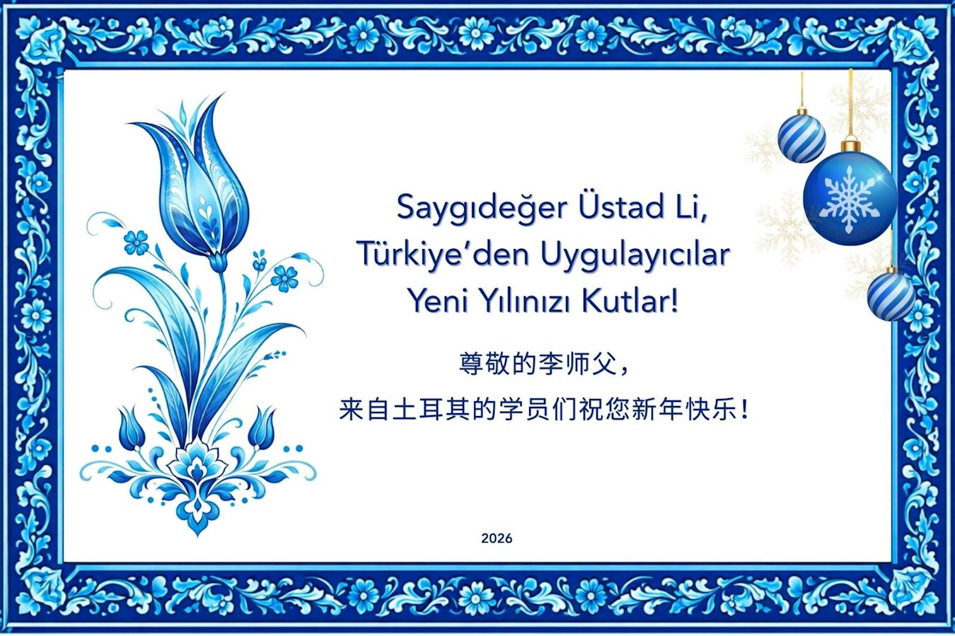 Čestitka je primljena i od praktikanata sa Palaua.Praktikanti iz Turske žele Učitelju Li-u sretnu Novu godinu!Čestitka praktikanata iz LitvanijePraktikanti iz Tajlanda su poslali svoju čestitku.Praktikanti sa Filipina žele Učitelju Li-u sretnu Novu godinu!
