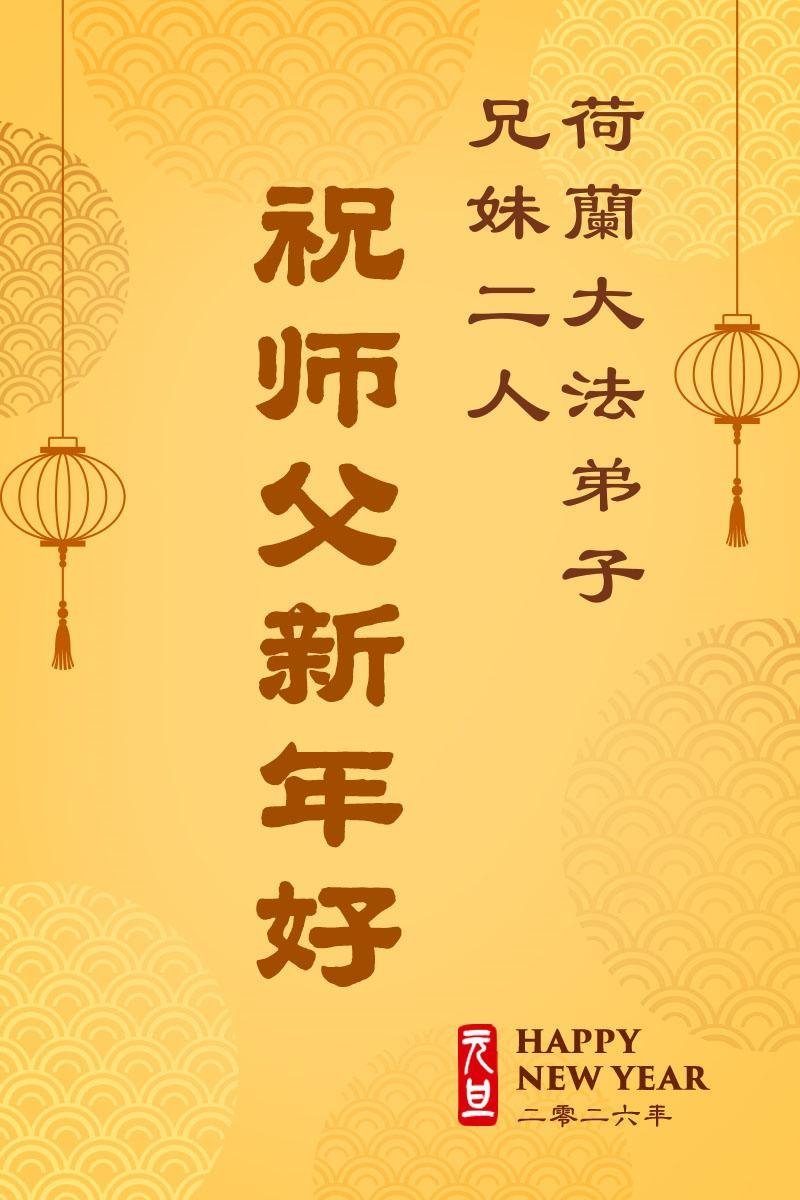 Čestitka praktikanata iz DanskeNovogodišnje čestitke praktikanata iz Holandije i BelgijePraktikanti iz Južne Koreje žele Učitelju Liju sretnu Novu godinu!Novogodišnje čestitke praktikanata iz Japana„Sretna Nova godina, Učitelju Li!“, napisali su praktikanti u Indoneziji.Čestitka praktikanata iz AustralijeNovogodišnje čestitke praktikanata iz GrčkeČestitka praktikanata iz Mongolije i Unutrašnje MongolijePraktikanti iz Globalnog servisnog centra za napuštanje Komunističke partije Kine (Tuidang centar) u Torontu, Kanada, žele Učitelju Li-u sretnu Novu godinu!Čestitka praktikanata iz Brazila