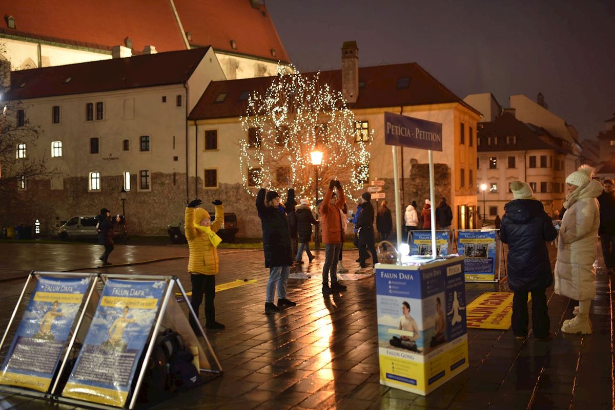 Od 29. novembra do 21. decembra 2025. godine, praktikanti su vikendom održavali događaje u gradovima Nitra i Bratislava kako bi ljudima govorili o kršenju ljudskih prava povezanom sa progonom Falun Gonga (Falun Dafe) u Kini.