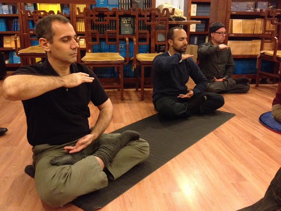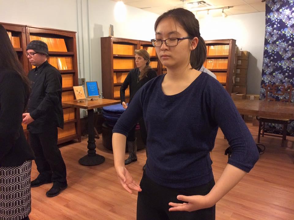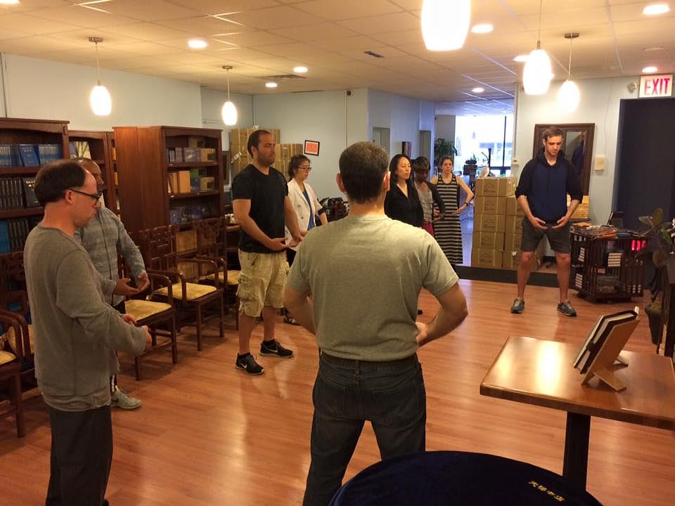 Učenici uče Falun Dafa vježbe u Tianti knjižari u 30-toj Zapadnoj ulici na Manhattanu.