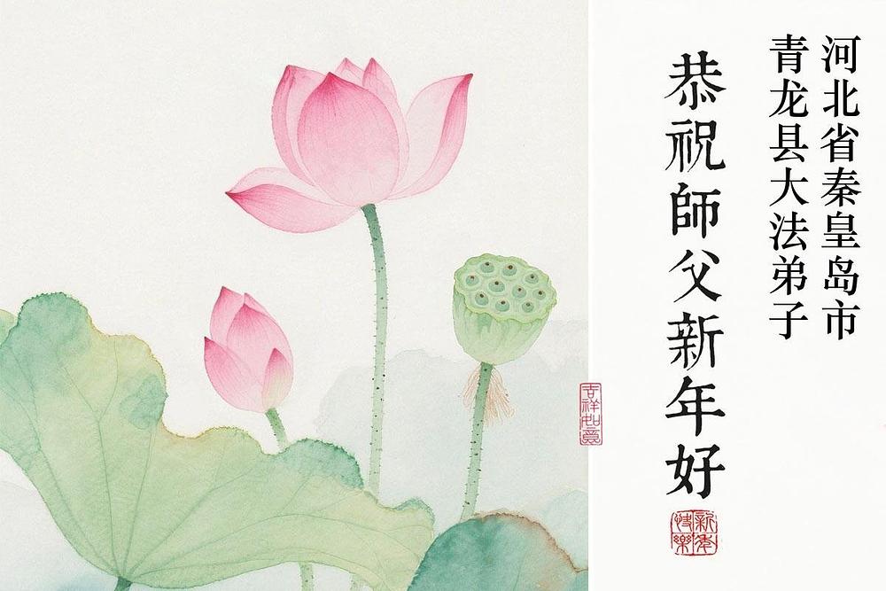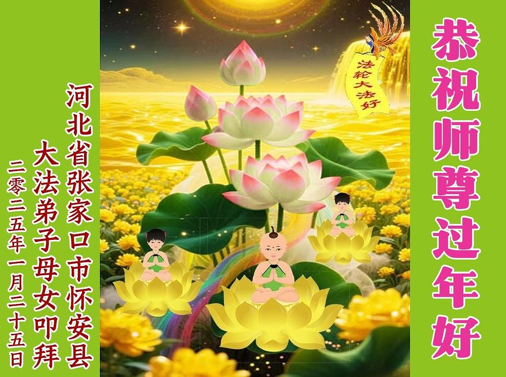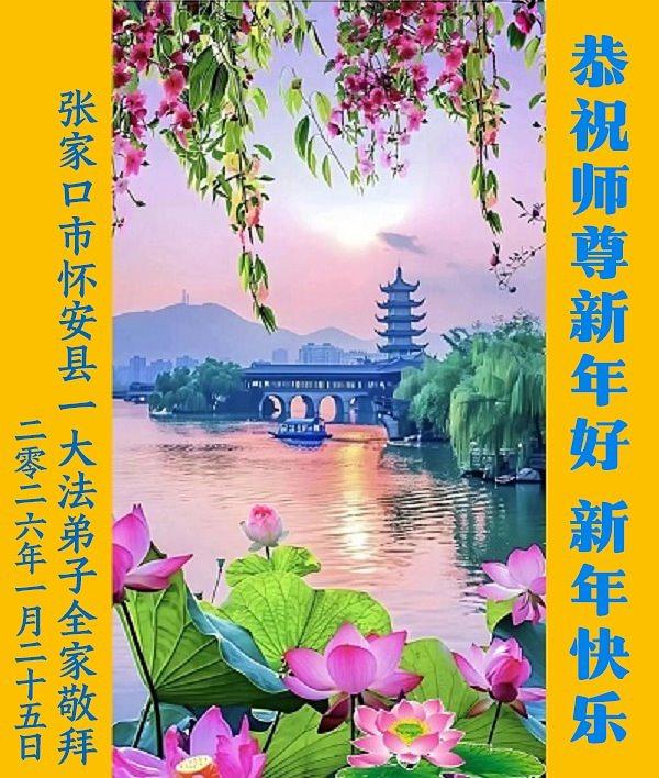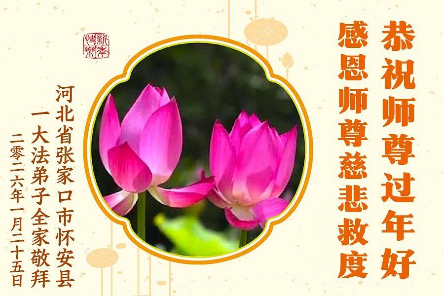 Falun Dafa praktikanti u provinciji Hebej s poštovanjem žele Učitelju Li Hongdžiju srećnu kinesku Novu godinu (107 čestitki)