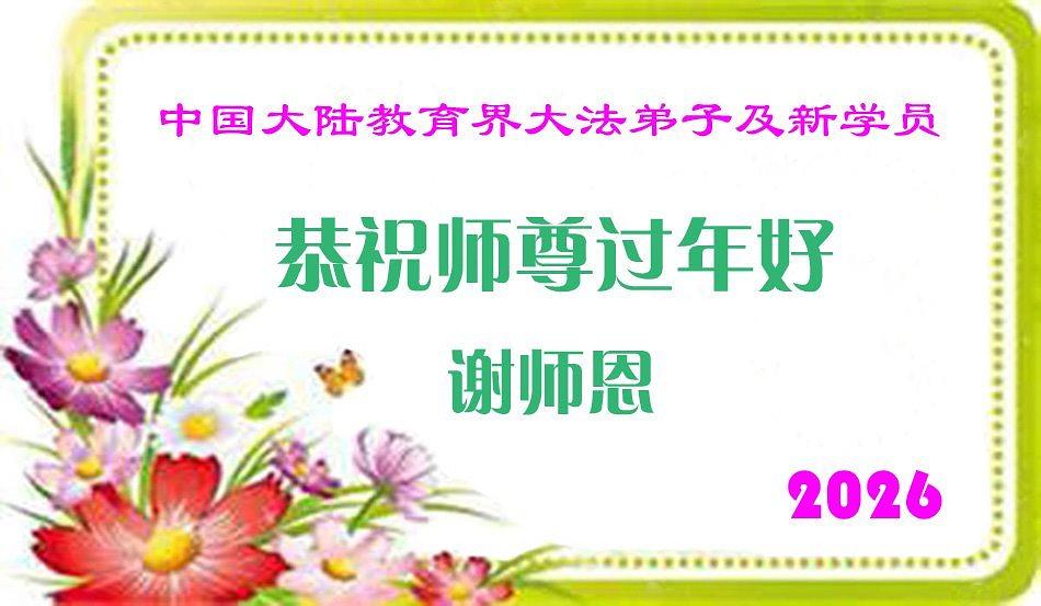 Ovaj članak sadrži čestitke od praktikanata Falun Dafe iz cele Kine koji rade u kineskom obrazovnom sistemu. Oni izražavaju svoju zahvalnost Učitelju Li Hongdžiju i žele mu srećnu Kinesku novu godinu. Obećavaju da će nastaviti marljivo da se kultivišu i u narednoj godini.