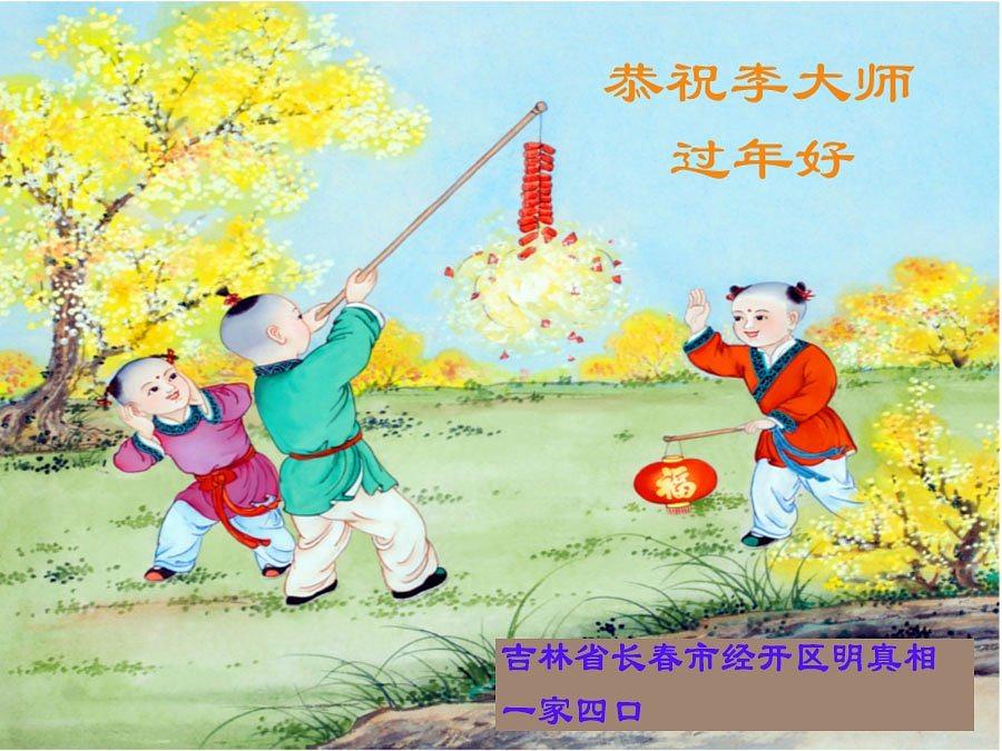 Pristalice Falun Dafe iz Tjenđina, Čongkinga, Junana, Ningsije, Anhuija, Šansija, Đangsija, Henana, Hunana i Gansua žele poštovanom učitelju srećnu Novu godinu!