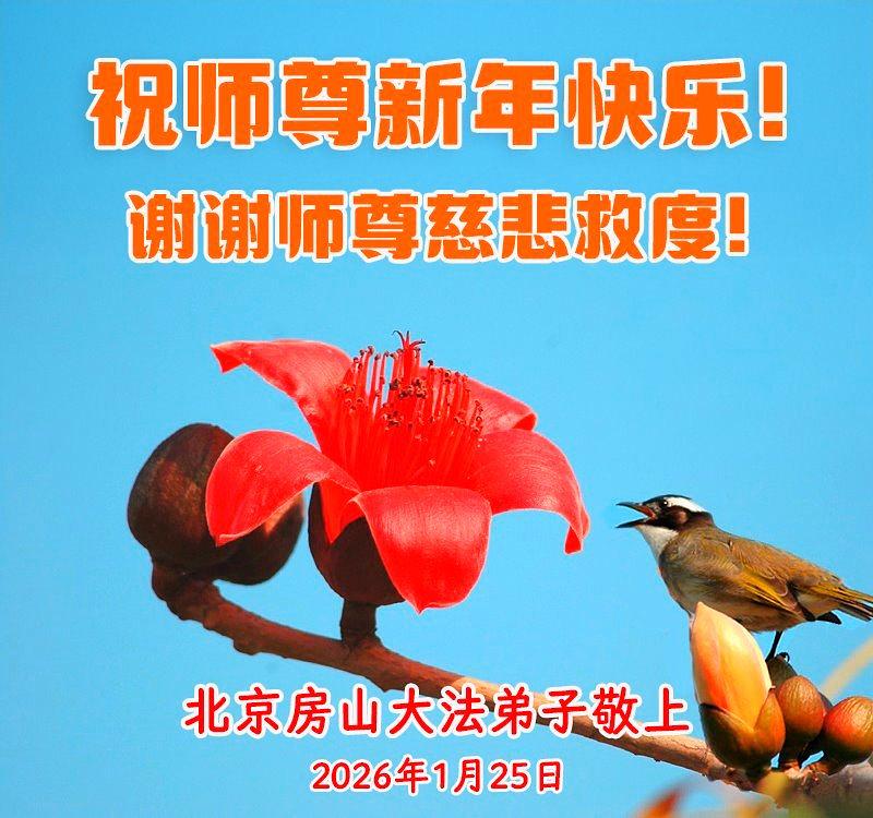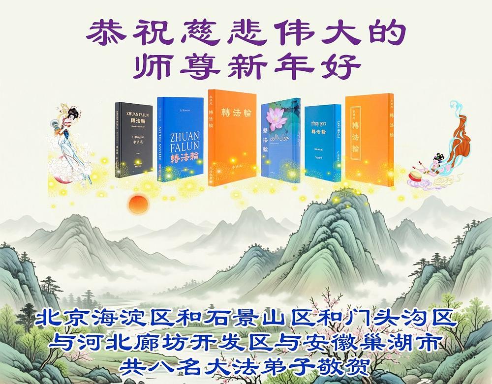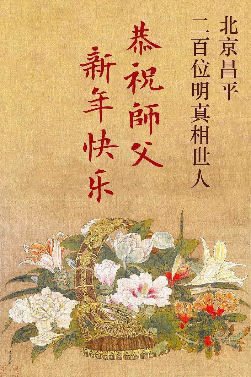 Falun Dafa praktikanti u Pekingu s poštovanjem žele Učitelju Li Hongdžiju srećnu kinesku Novu godinu (108 čestitki)