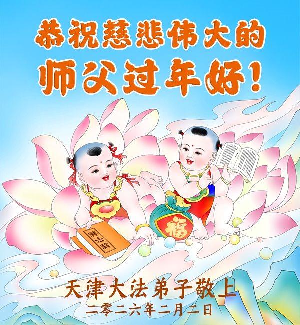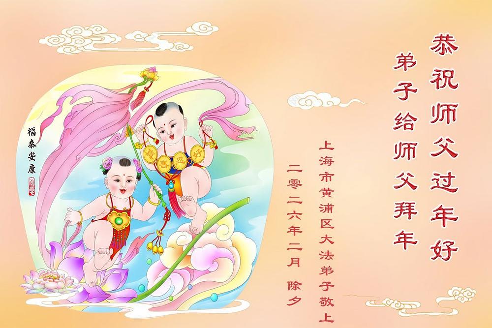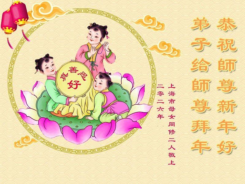 Falun Dafa praktikanti u Tjenđinu i Šangaju s poštovanjem žele Učitelju Li Hongdžiju srećnu kinesku Novu godinu (107 čestitki)
