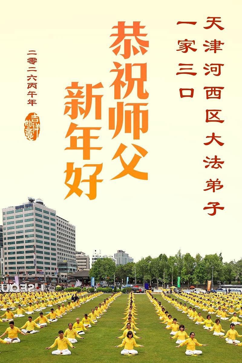 Falun Dafa praktikanti u Tjenđinu i Šangaju s poštovanjem žele Učitelju Li Hongdžiju srećnu kinesku Novu godinu (63 čestitke)