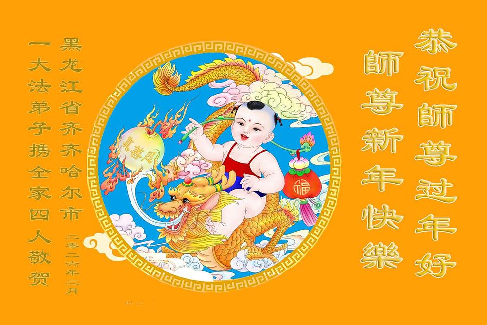 Falun Dafa praktikanti, članovi porodice i pristalice u provinciji Hejlungđang žele poštovanom Učitelju srećnu kinesku Novu godinu!