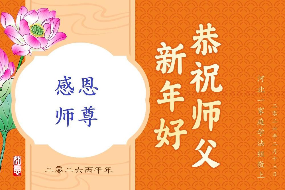 Falun Dafa praktikanti u provinciji Hebej s poštovanjem žele Učitelju Li Hongdžiju srećnu kinesku Novu godinu (106 čestitki)