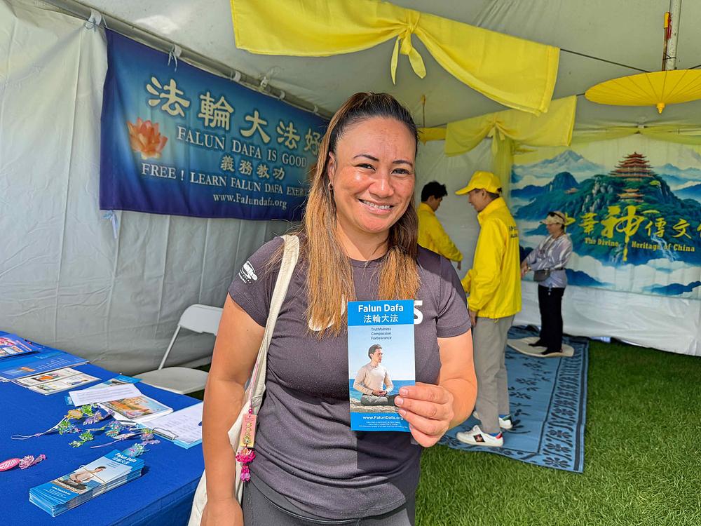 Rebecca je bila među mnogim ljudima koji su isprobali vježbe. „Ovo je prvi put da vježbam [Falun Gong] vježbe. Nikada prije nisam probala, iako sam vidjela ljude kako vježbaju vani.