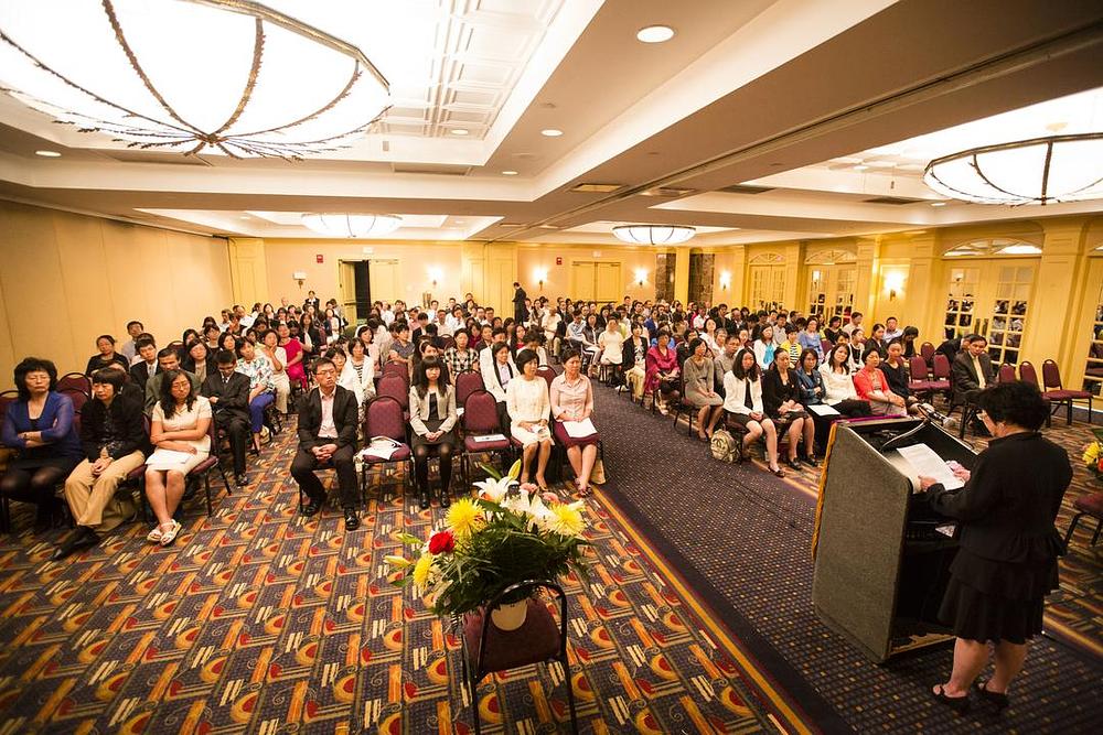 Kako bi proslavili desetu godišnjicu od osnivanja njujorškog orkestra "Divine Land Marching Band", njegovi članovi su 1. avgusta 2015. održali konferenciju za razmjenu iskustava. Dvadeset i četiri člana orkestra podijelili su svoje priče iz kultivacije i uvide koje su stekli pripremajući se i prezentirajući Falun Gong kroz nastupe na paradama i drugim društvenim manifestacijama. Za vrijeme konferencije, oni su dobili pjesmu čestitku od g. Li Hongzhija, osnivača Falun Gonga.
