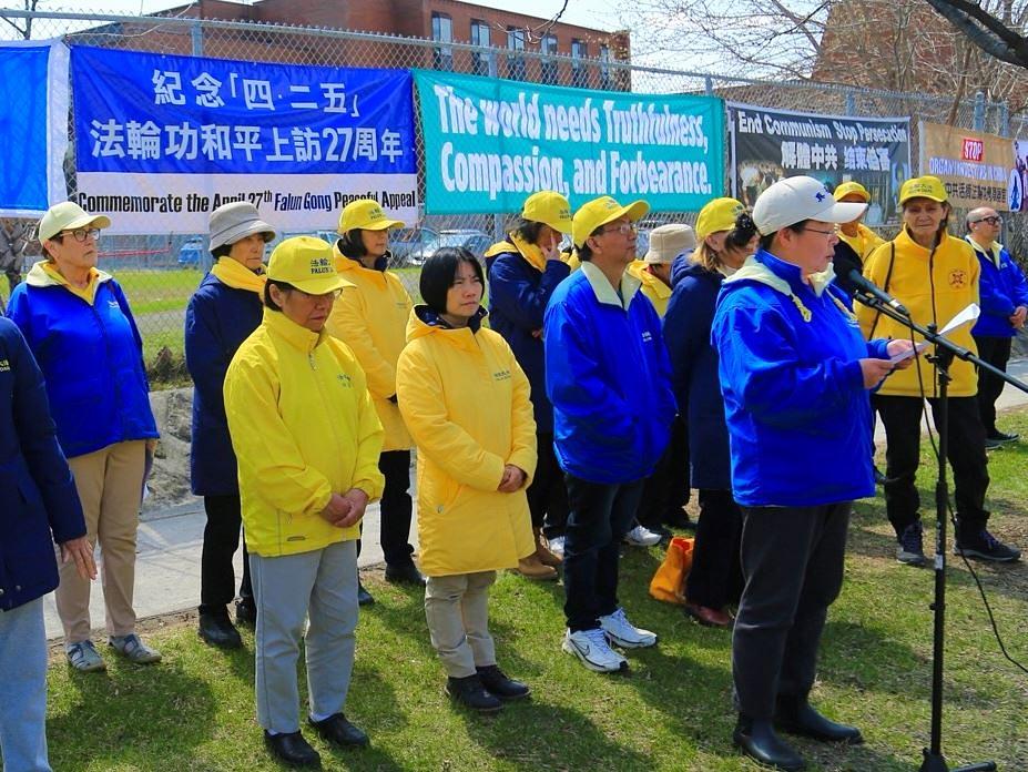 Praktikanti su tog dana na skupu dali izjavu: „Dok stojimo ovdje danas, ponavljamo jednostavno i moćno načelo: sloboda vjerovanja je univerzalno ljudsko pravo, izvan svih granica, politika i ideologija. Tražimo od kanadske vlade da zaustavi transnacionalnu represiju koju vrši Peking nad Falun Gongom na kanadskom tlu."