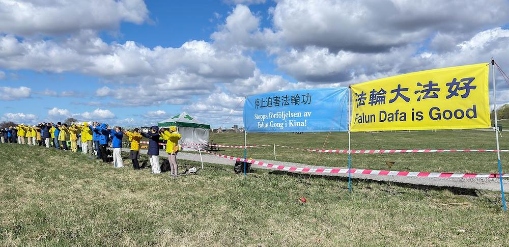 Praktikanti su otišli na trg Mintorget pored Parlamenta u 13 časova, radili vežbe i prikupljali potpise na peticiji kojom se poziva na okončanje progona. Predstavili su praksu javnosti i govorili o apelu od 25. aprila u Pekingu, progonu od strane KPK i državnom prisilnom vađenju organa od strane KPK.