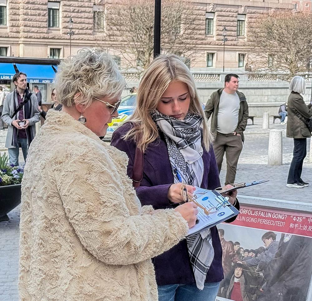 Praktikanti su takođe održali događaj pored zgrade parlamenta u centru Stokholma 25. aprila 2026. godine. Oni su ljudima govorili o progonu od strane KPK i državnom prisilnom vađenju organa, kao i o transnacionalnoj represiji. Pozvali su švedski narod da pomogne u zaustavljanju ovih kršenja ljudskih prava.