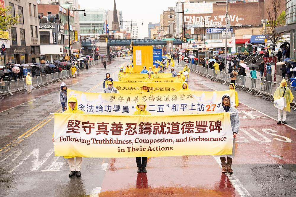 Ovoga 25. aprila 2026. godine, praktikanti u području šireg New Yorka su održali veliki marš i skup u centru Flushinga, lokaciji najveće kineske zajednice u New Yorku, kako bi obilježili 27. godišnjicu mirnog apela. Nakon marša, praktikanti su održali skup pored biblioteke u Flushing, tokom kojeg su govorili lideri zajednice i drugi govornici. Izrazili su podršku praktikantima i pohvalili njihove napore da razotkriju progon.