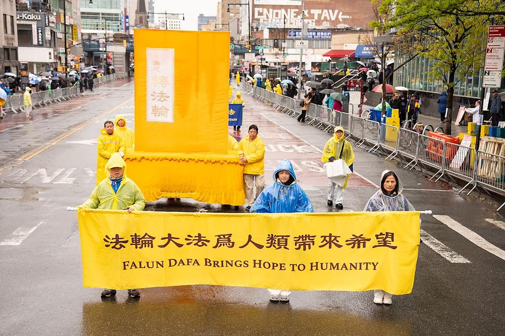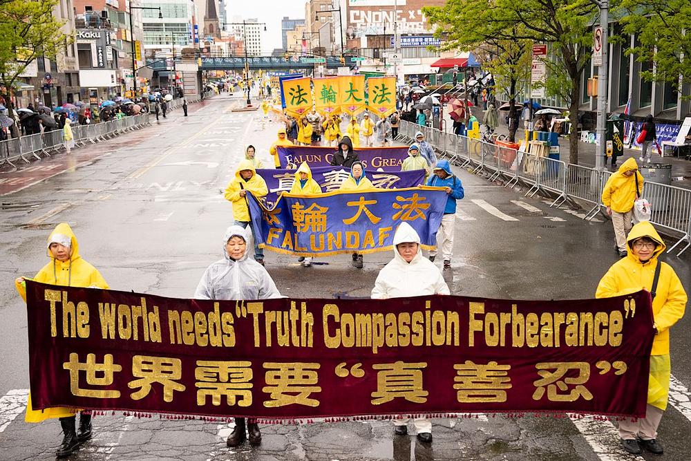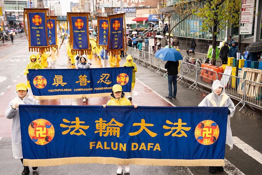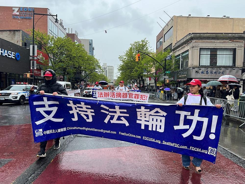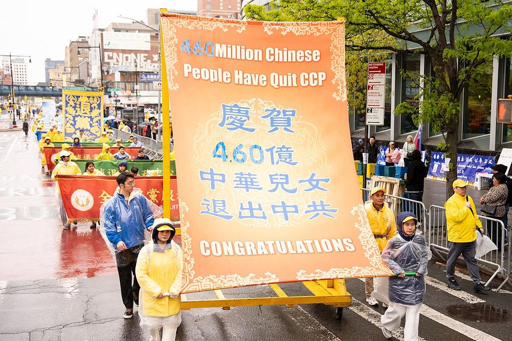 Predvođen Tian Guo marširajućim orkestrom, marš u Flushingu se sastojao od tri dijela: „Falun Dafa je dobar", „Zaustavite progon Falun Gonga" i „Podržite 460 miliona ljudi koji su povukli članstvo iz KPK."