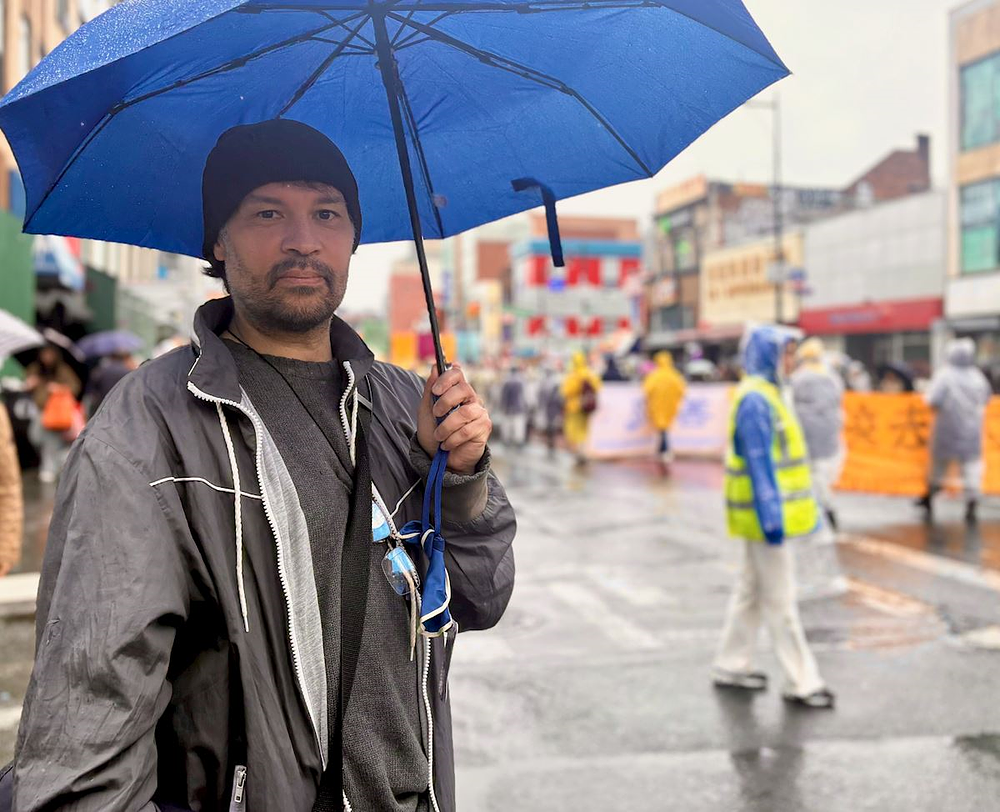 Gospodin Zhang, koji je nedavno stigao u Flushing iz Shenzhena u Kini, je tog dana gledao marš. Rekao je da zna za progon Falun Gonga u Kini.