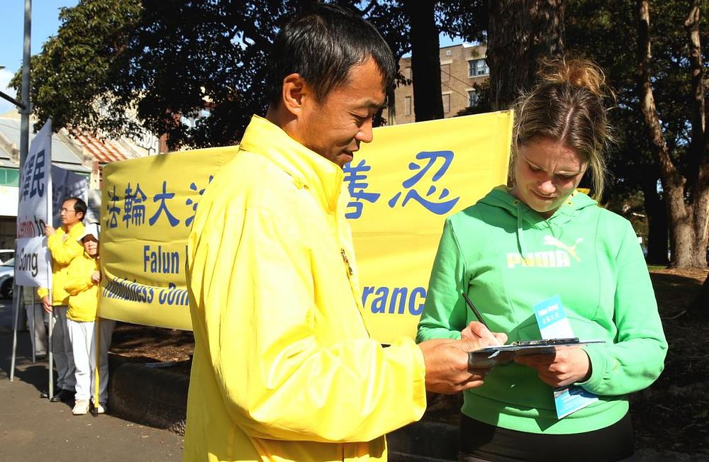 Veliki broj potpisnika je na odlasku sa mjesta za prikupljanje potpisa podizao palac u vis u znak podrške. Jedan je čovjek spustio prozor svoga automobila da bi dobio materijale za informisanje. Kineski studenti koji studiraju na obližnjem Sidnejskom Univerzitetu fotografisali su Falun Gong transparente.