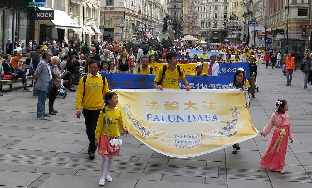 Evropski „Divine Land Marching Band“ je predvodio trosatnu povorku koja se kretala centrom Beča, a koja je krenula sa trga Stephansplatz. Gledatelje su također zabavljali i grupa zmajevog plesa kao i „nebeske djevojke“, dok je izvođenje Falun Gong vježbi u pokretnom brodu oslikavalo miroljubivi karakter Falun Gonga.