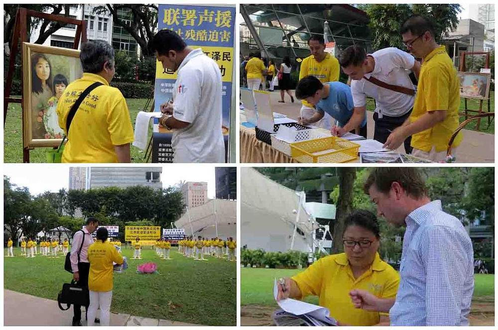Kao odjek na talas tužbi podignutih protiv bivšeg kineskog diktatora Jiang Zemina zbog njegove uloge u progonu Falun Gonga, održano je javno potpisivanje peticije u Hong Lim parku 14. decembra. Lokalni stanovnici i posjetioci iz različitih društvenih sredina toplo su podržali aktivnosti i pozvali kineski režim da ispita Jiangove zločine počinjene tokom 16 godina progona.