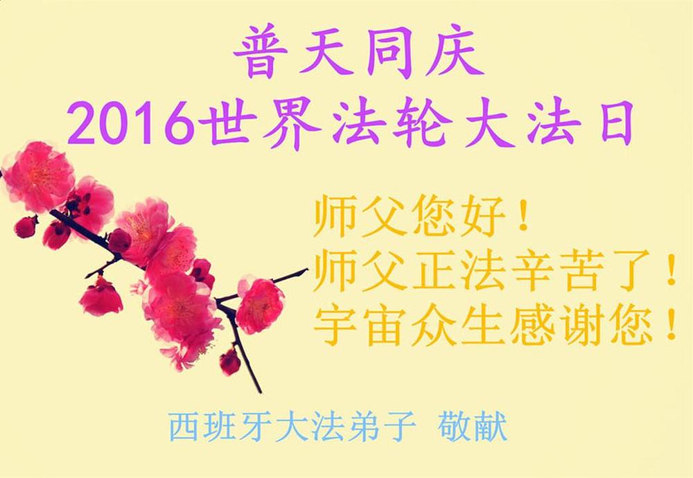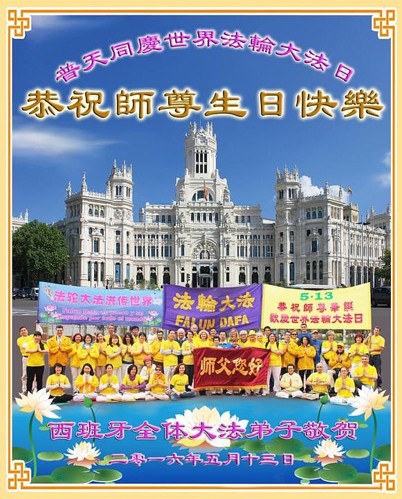 Praktikanti iz Španije, Grčke i Izraela proslavljaju Svjetski Falun Dafa dan i 24. godišnjicu predstavljanja Falun Dafa u javnosti i s poštovanjem žele cijenjenom Učitelju sretan rođendan!