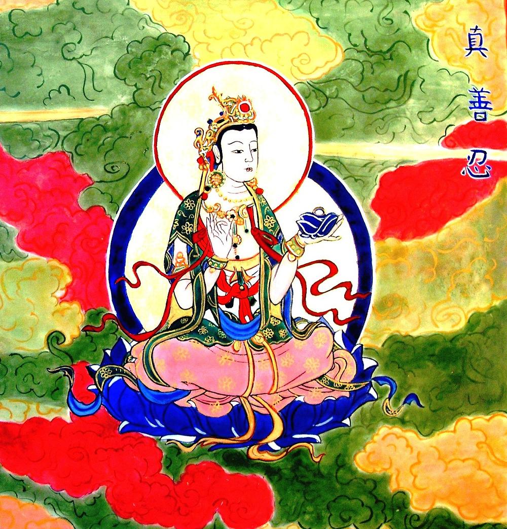 Napomena: Umjetnik je ranije posjetio pećine Dunhuang, provincija Gansu, i hram Fahai pokraj Pekinga, naslikavši ovo djelo uz pomoć Buddhinih portreta kao model. Umjetnik je slikao kistovima s mineralnim pigmentima, organskim, prirodnim bojama te zlatom, na drvenoj ploči za slikanje. To su tradicionalne tehnike slikanja koje izvorno potječu iz Bizantskog carstva.