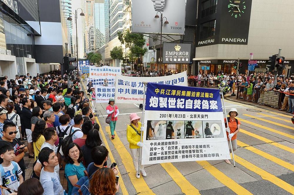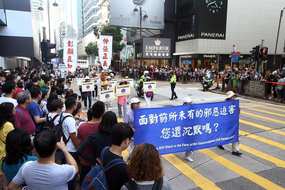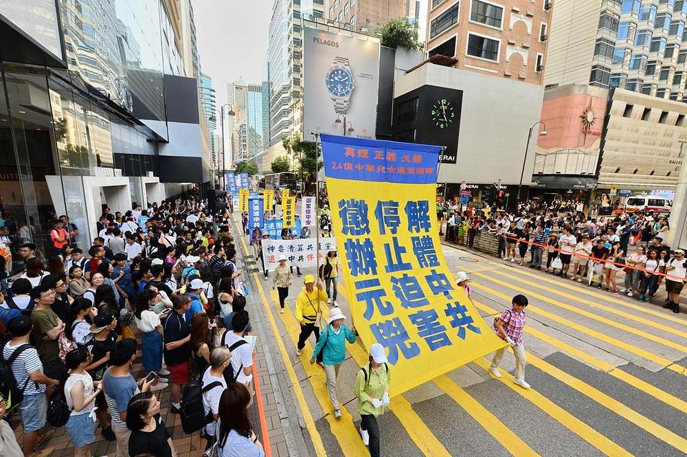 Nakon skupa ispred vladinog kompleksa u Hong Kongu, praktikanti su održali marš koji je trajao dva i po sata od Kowloona do Tsim Sha Tsuija.