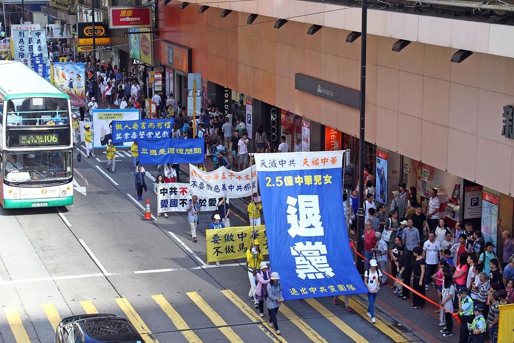 Mnogi su turisti, koji su došli u posjetu Hong Kongu za praznični vikend, vidjeli Falun Gong marš i bili zatečeni brutalnošću progona. Neki su odlučili da istupe iz Partije.