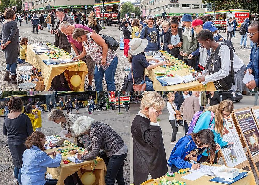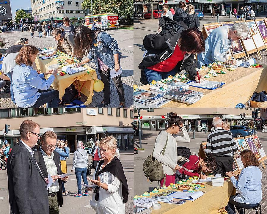 U Gavleu, 100 milja sjeverozapadno od Štokholma, praktikanti su demonstrirali vježbe i prikupljali potpise da osude progon. Mnogi su ljudi, uključujući i neke Kineze, potpisali peticiju podrške Falun Gongu.