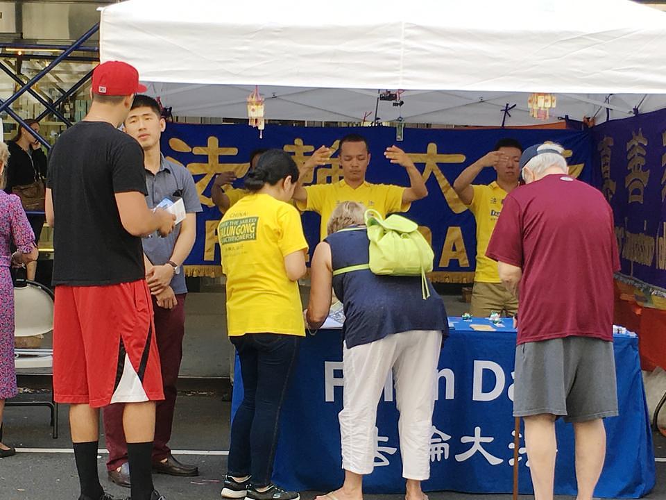 Falun Gong štand na uličnom vašaru na Manhatanu.