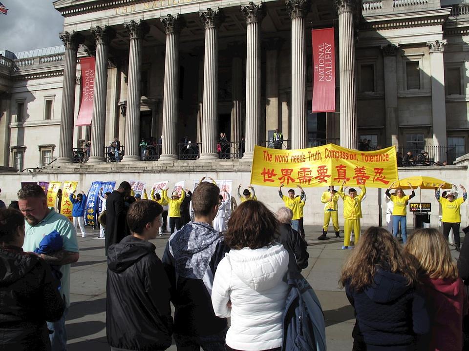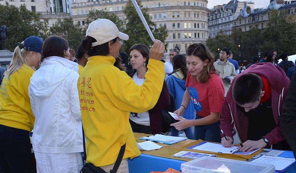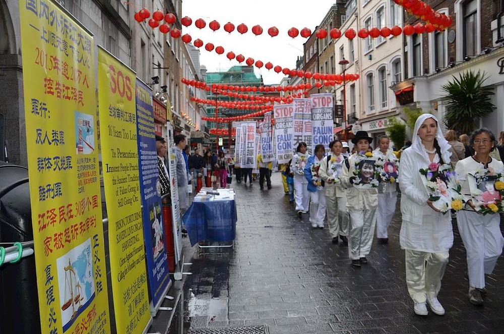 Praktikanti iz Londona su 1. oktobra 2016. godine u centru Londona održali marš i skup kako bi objasnili činjenice o progonu, a posebno o prisilnom otklanjanju organa od živih praktikanata Falun Dafa, koje se pod okriljem države vrši u Kini. Oni su također pozvali i kinesku vladu da istraži djelovanje bivšeg kineskog komunističkog lidera Jiang Zemina, zbog zločina počinjenih u progonu. Mnogi su ljudi za vrijeme ove manifestacije potpisali peticiju u znak podrške mirnom otporu Falun Gonga.