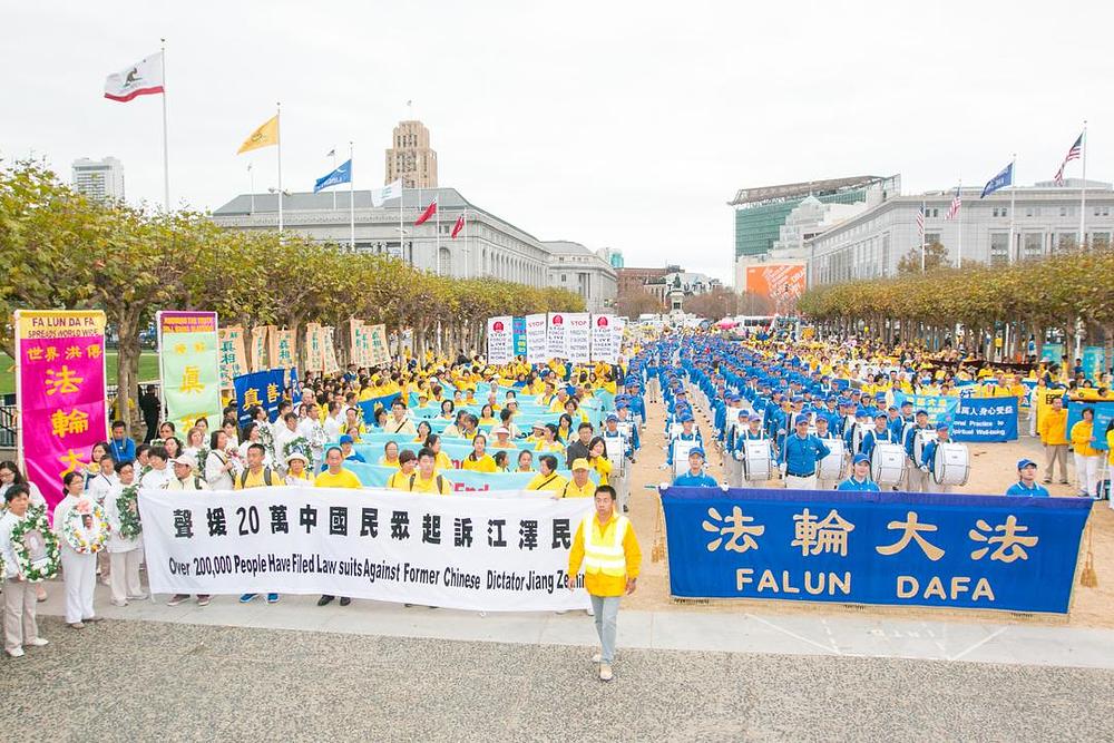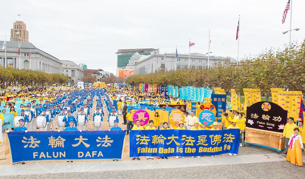 Političari, ljekari, advokati i aktivisti iz demokratskih pokreta su na skupu ispred gradske vijećnice u San Francisku 25. oktobra 2016. godine snažno podigli svoj glas, osudivši 17 godina dug progon Falun Gonga u Kini.